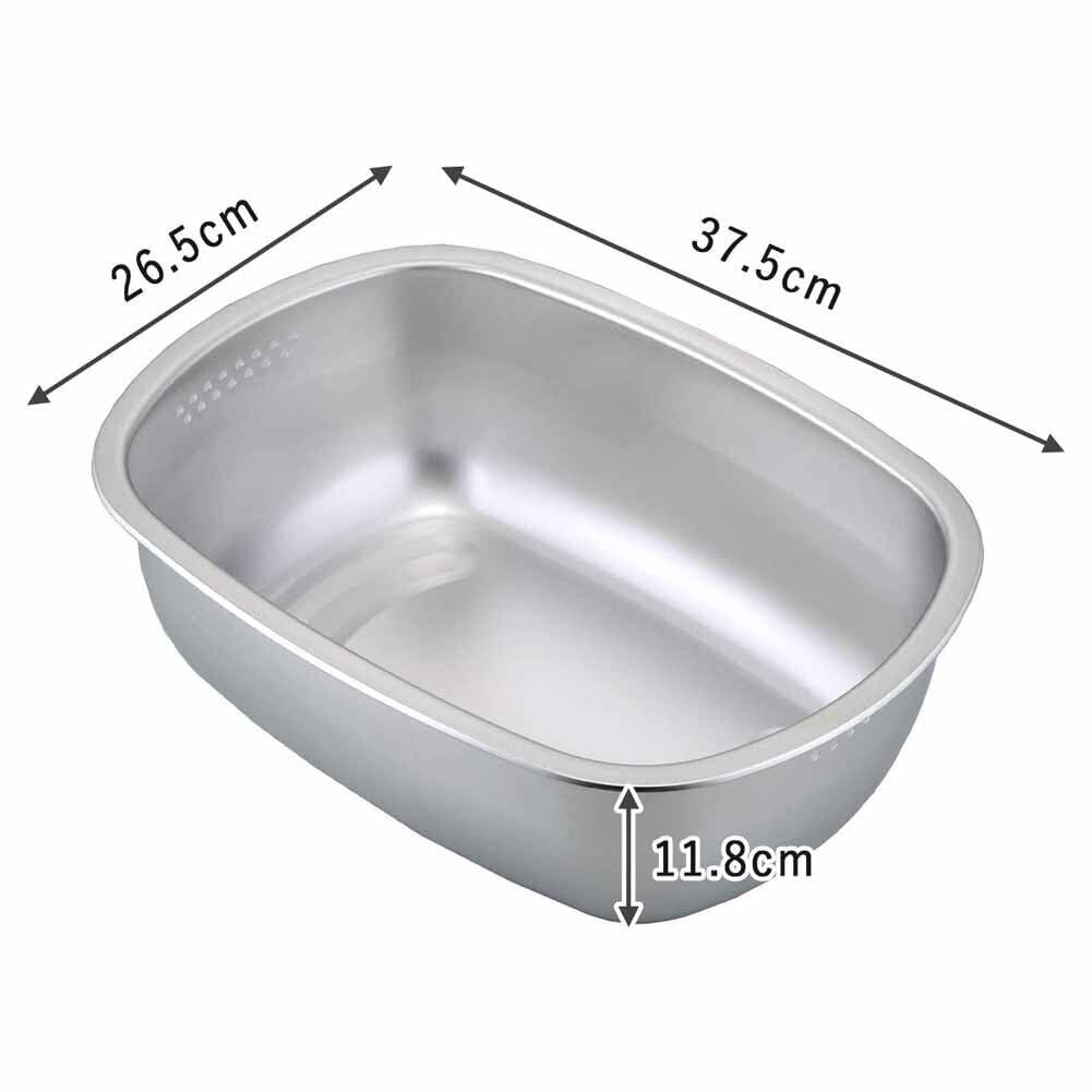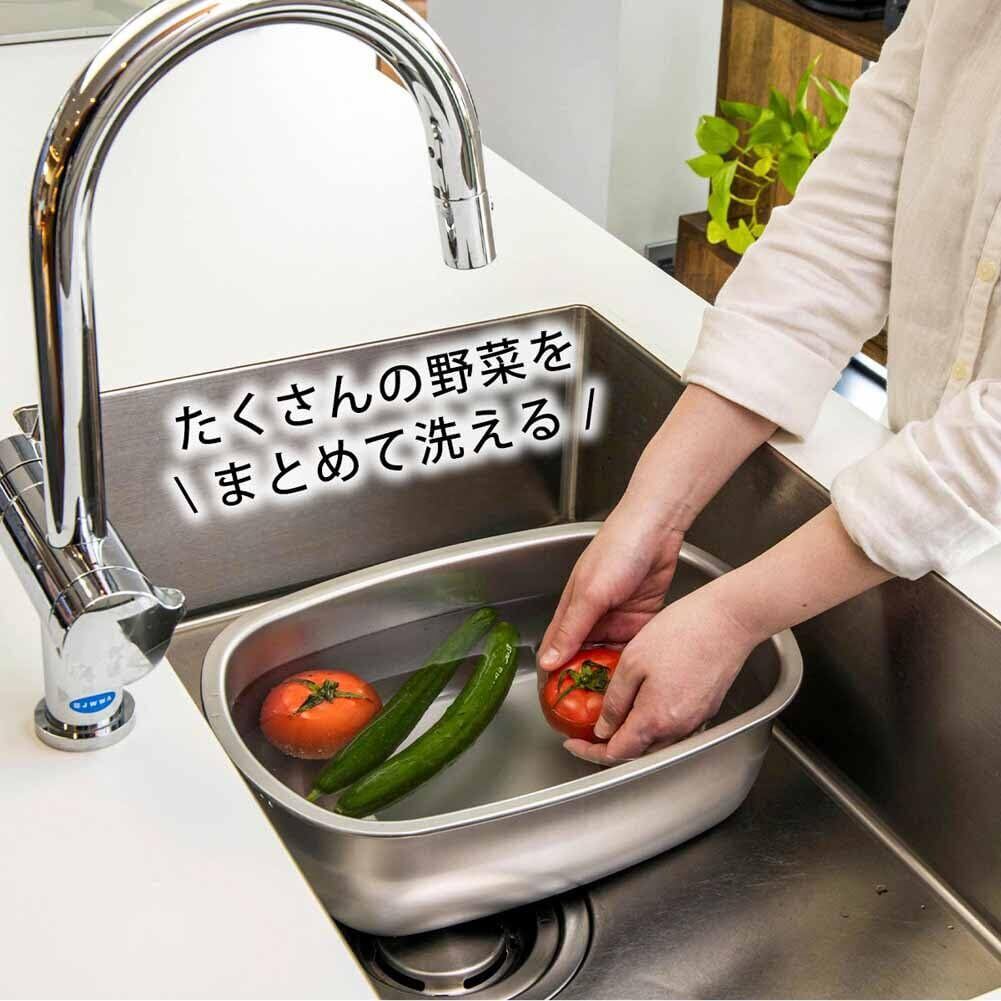 下村企販 継ぎ目のない洗い桶 【日本製】 汚れがたまりにくい 衛生的なステンレス製 水切り穴付き 脚付き 楕円型 小判型 つけ置き洗い 満水7.6L 燕三条 43698