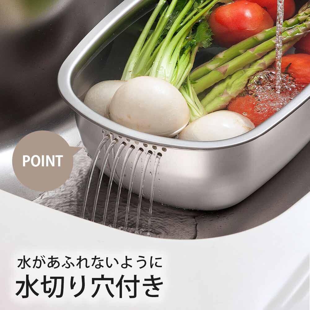 ●両サイドに水切り穴を設けてあるので、中の物が溢れ出さない