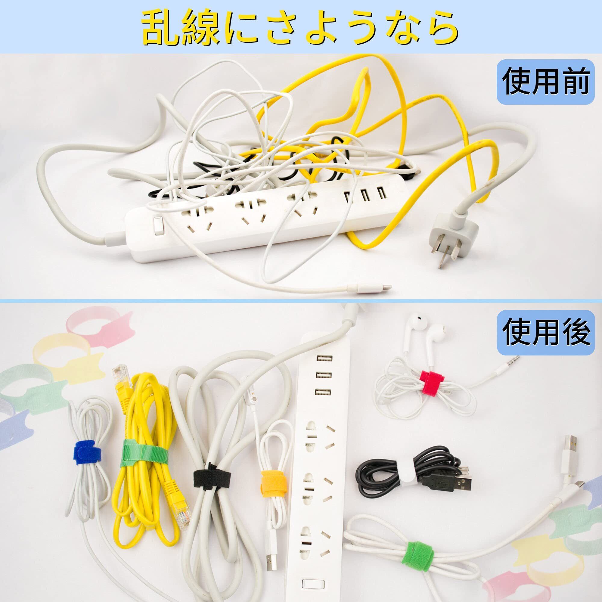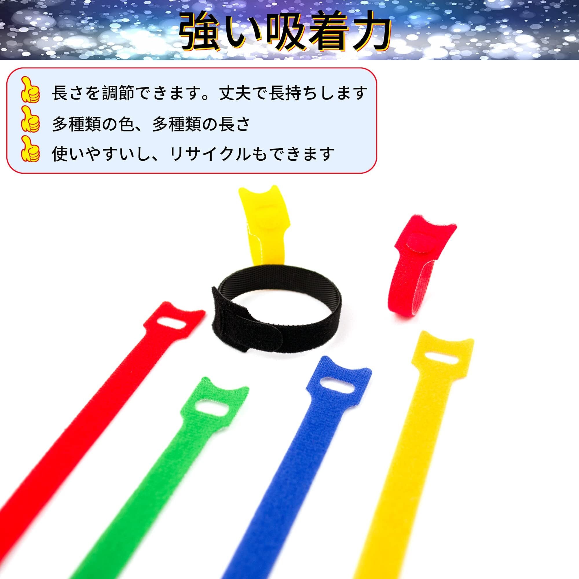 Jydclh18 60本(6色) コードケーブルタイ 結束バンド マジックテープ まとめる 面ファスナー 収納 束ねる るやつ 繰り返し利用可能