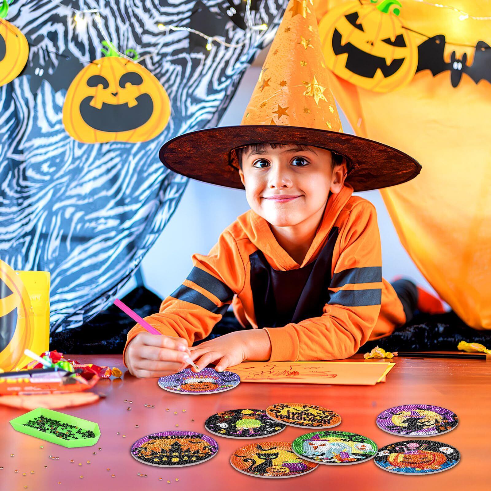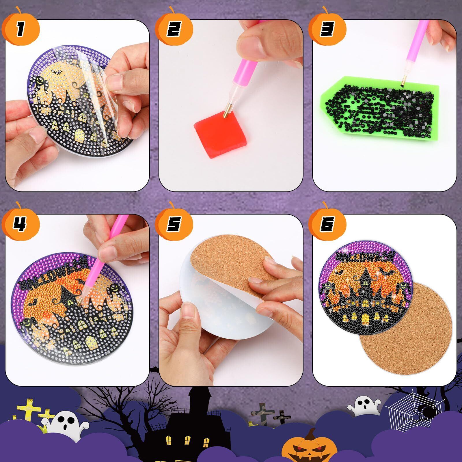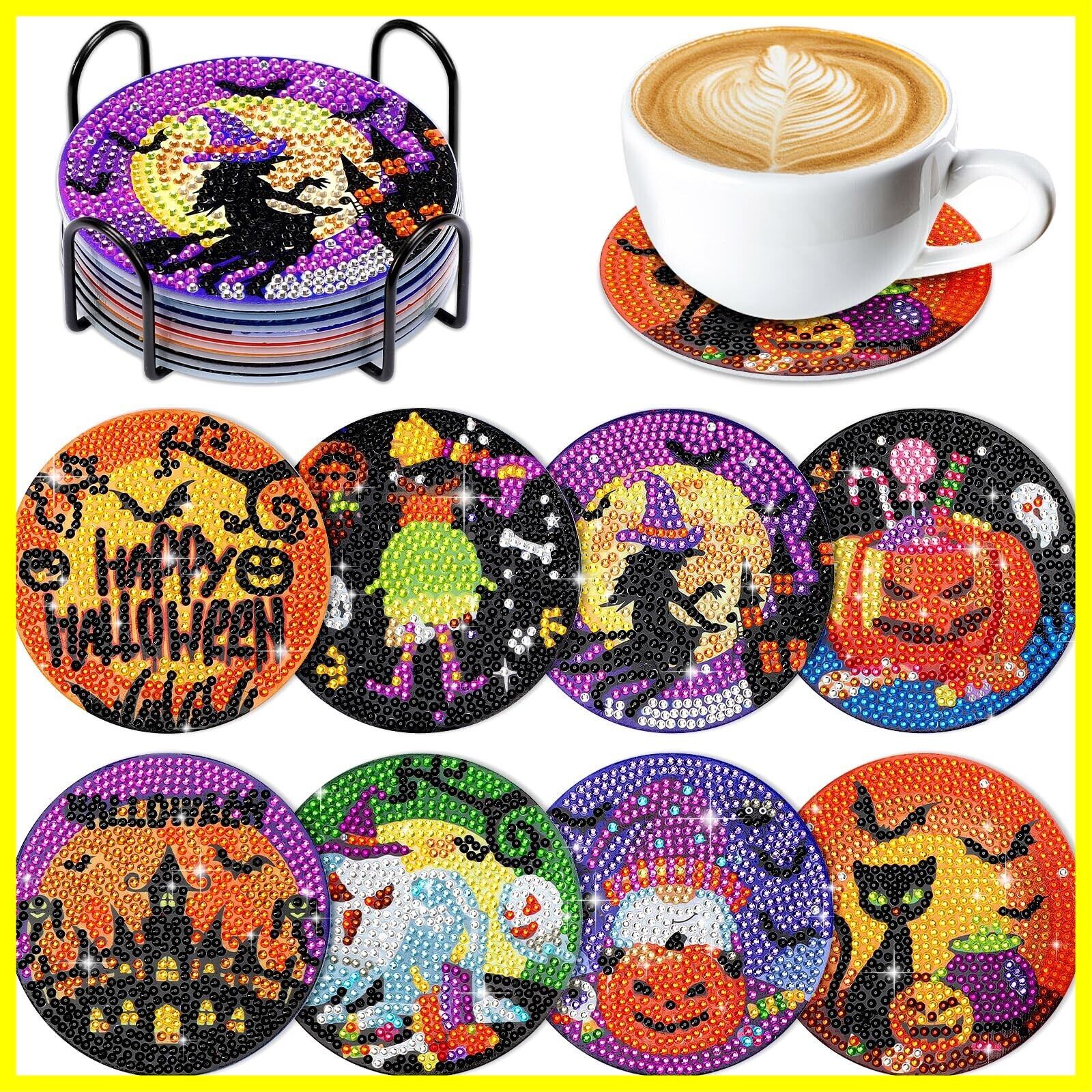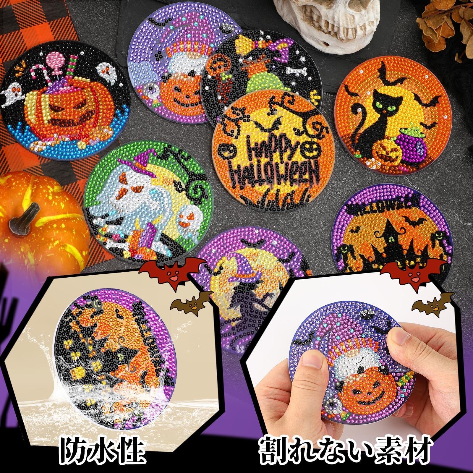 JANLOFO ハロウィン コースター 8枚セット ダイヤモンドアート コースター ハロウィン プレゼント ダイアモンドアート キット 初心者 ハロウィン 飾り 手作りキット 手芸キット