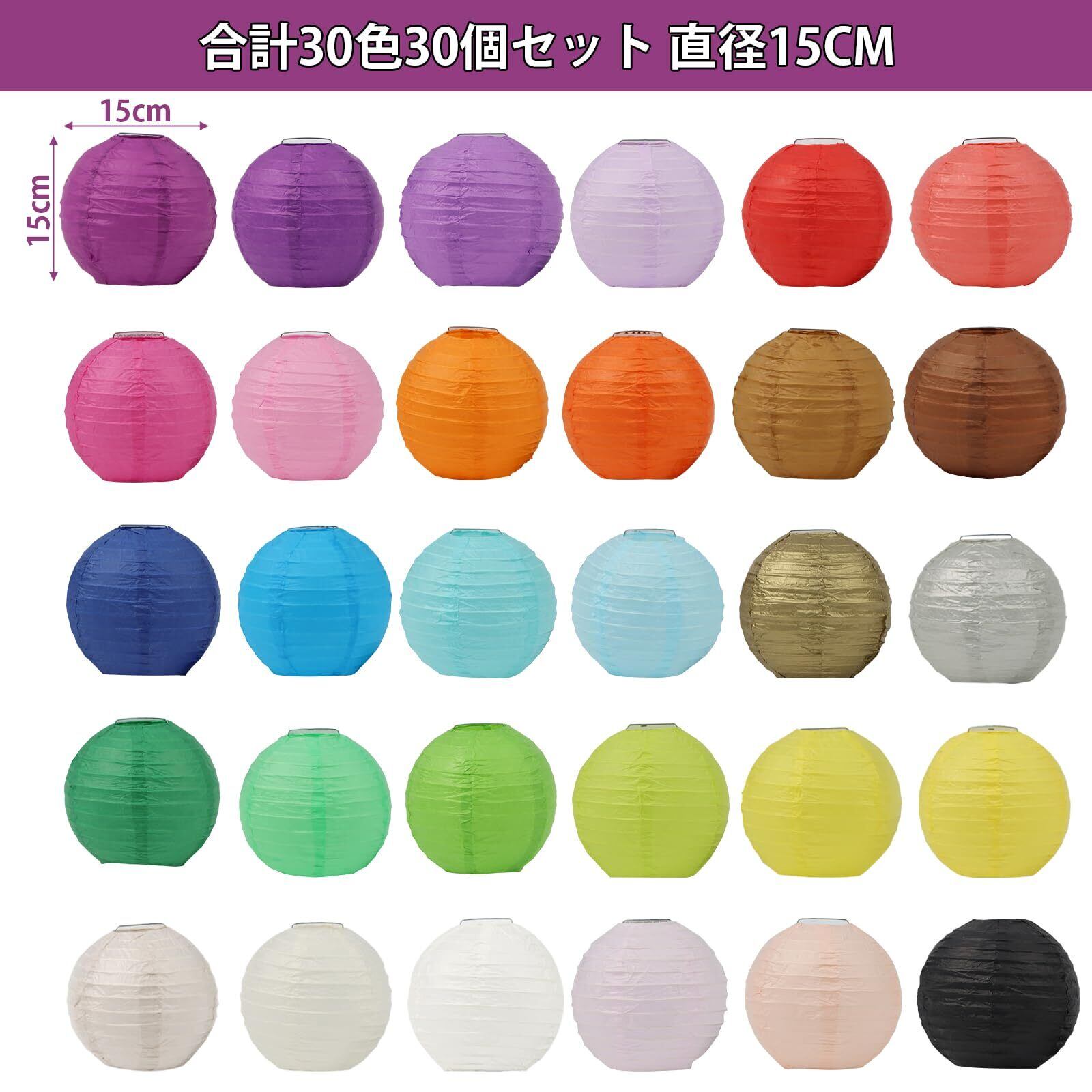 DARENYI 提灯 紙ちょうちん 30色30個セット直径15cm 紙提灯 カラフル 夏祭り/縁日/イベント/夏 飾り付け 装飾用 パーティー/お祭り/お盆/誕生日/結婚式/開業/DIY絵画/夏祭り飾り 丸型紙提灯 (マルチカラー 15cm)
