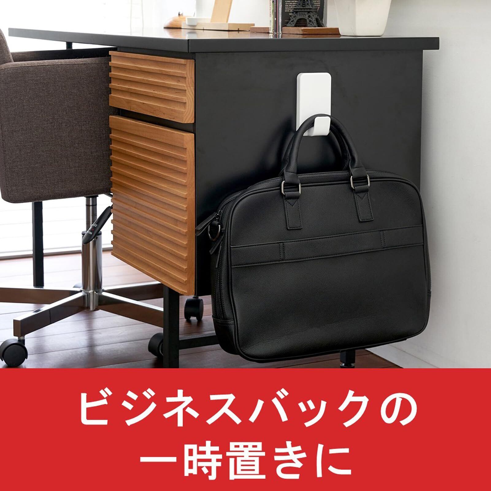 コマンドフック史上最大の耐荷重。シンプルでスタイリッシュなデザイン。幅広で奥行きのあるフック形状。取り付け面を傷めることなく設置でき、不要になったり移動する時はきれいに取り外せる。タブをゆっくり引き伸ばせば、のりを残さずきれいに、はがせる。はがしたフックは、粘着テープ(タブ)を取り替えて再利用できる。強力なフックなので、バッグやランドセル、リュック、カバン、厚いコート、荷物の一時置きや備品などの収納に便利。(耐荷重6.8kgまで)壁紙には使用できませんのでご注意ください。また、壁の素材によっては十分な耐荷重が得られない可能性があります。また、化粧シート構造の壁や表面の状態によっては、傷める場合がありますのでご注意ください。