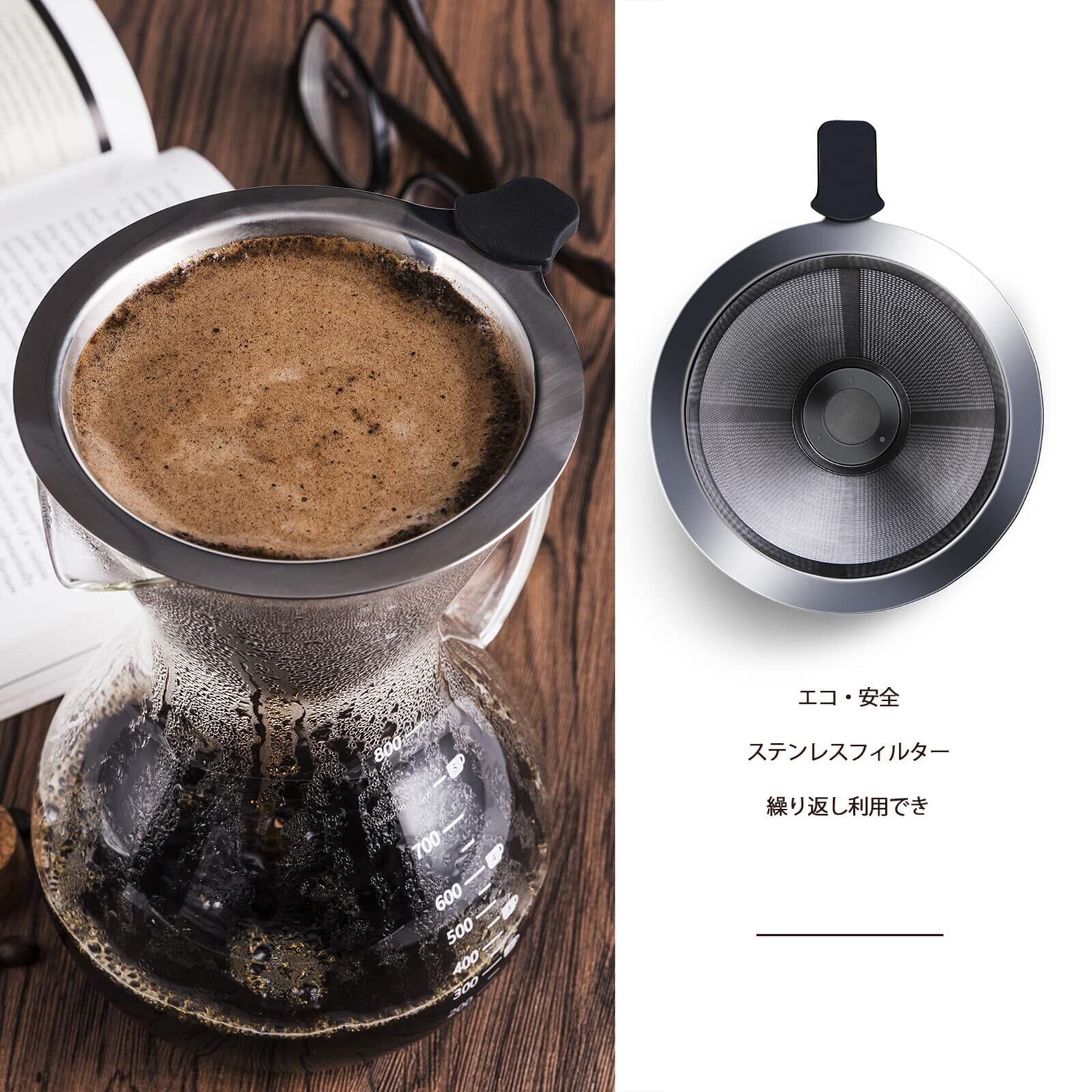 【エコ・便利】:2層の高品質ステンレスメッシュを採用、ペーパーフィルターも使用せず、繰り返し使えるので、環境にもやさしい便利なドリッパーです。半永久的に使え、エコで経済的なので、樹脂製、陶器製に比べて強度、耐熱、耐腐食性に優れています。