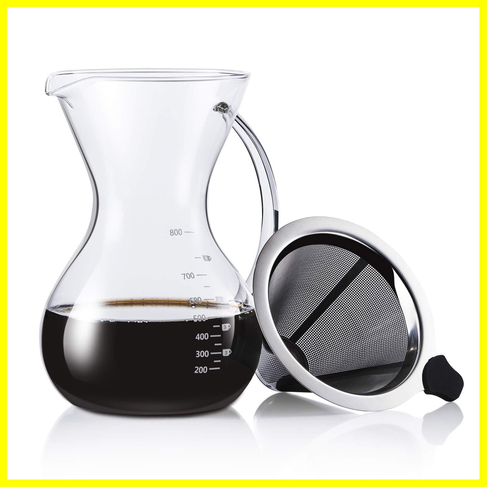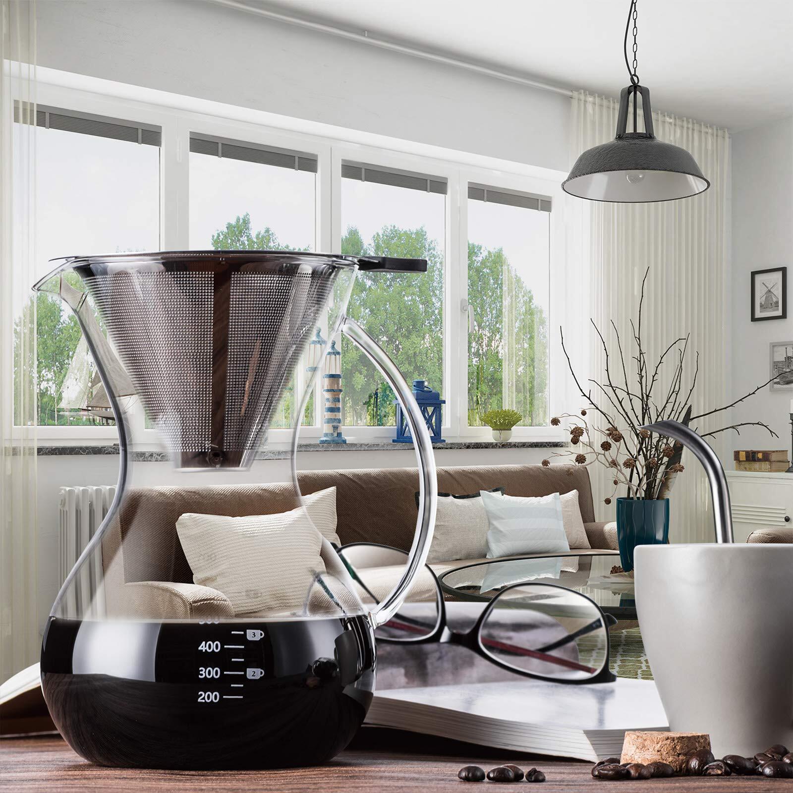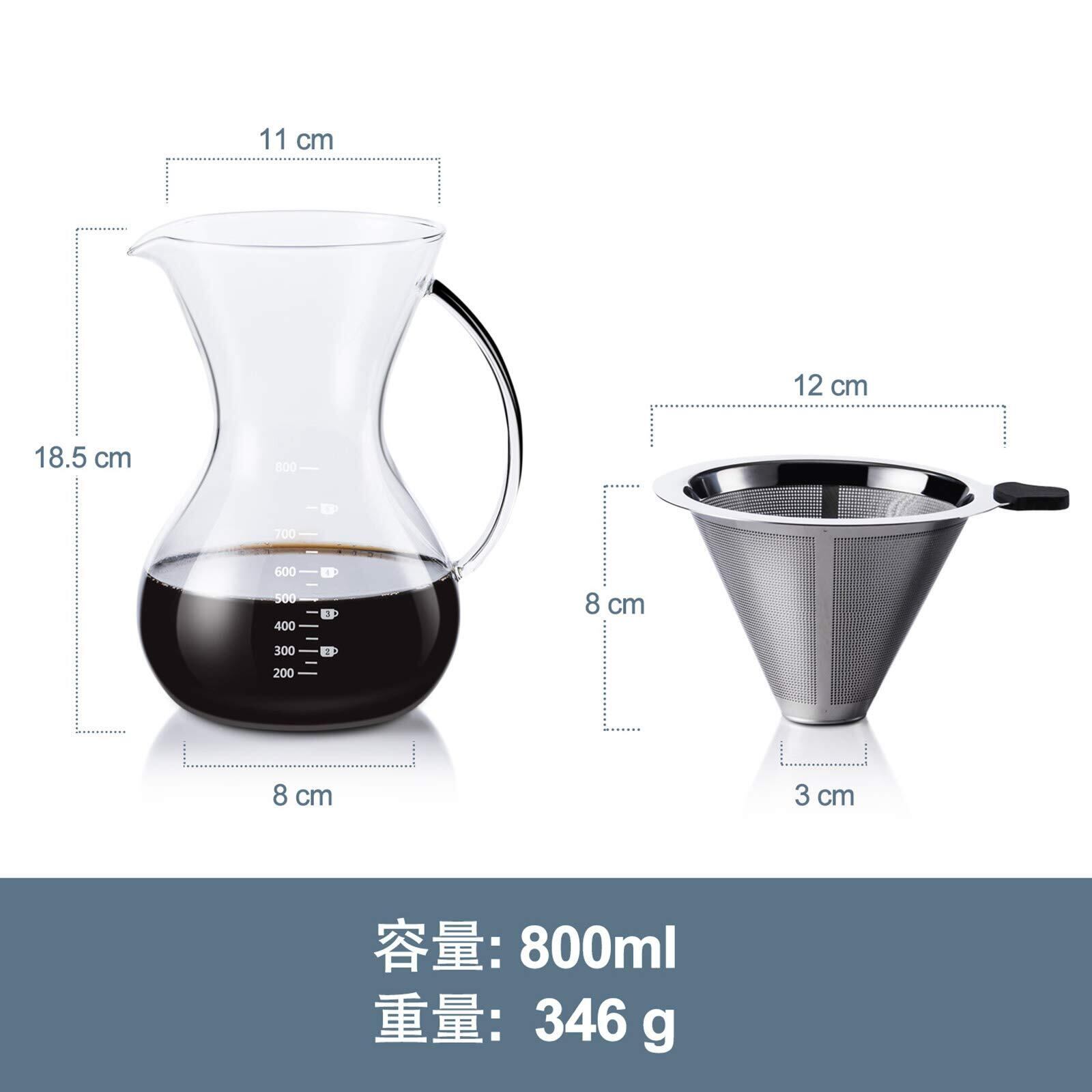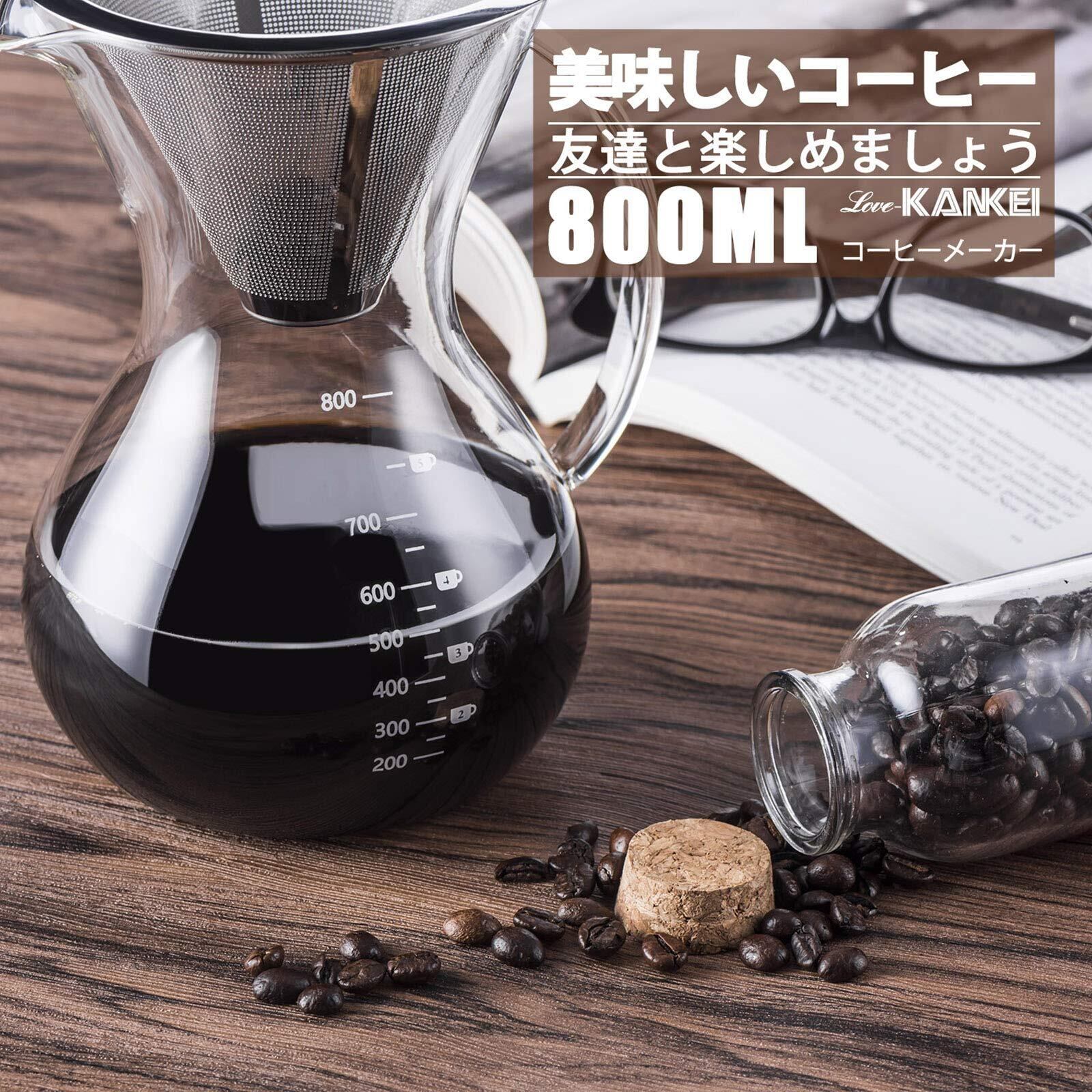 Love-KANKEI コーヒーサーバー コーヒードリッパー コーヒーカラフェセット プレゼント スポンジブラシ付属 耐熱ガラス ステンレスフィルター 2層メッシュ フィルター不要 電子レンジ可 (800ml)