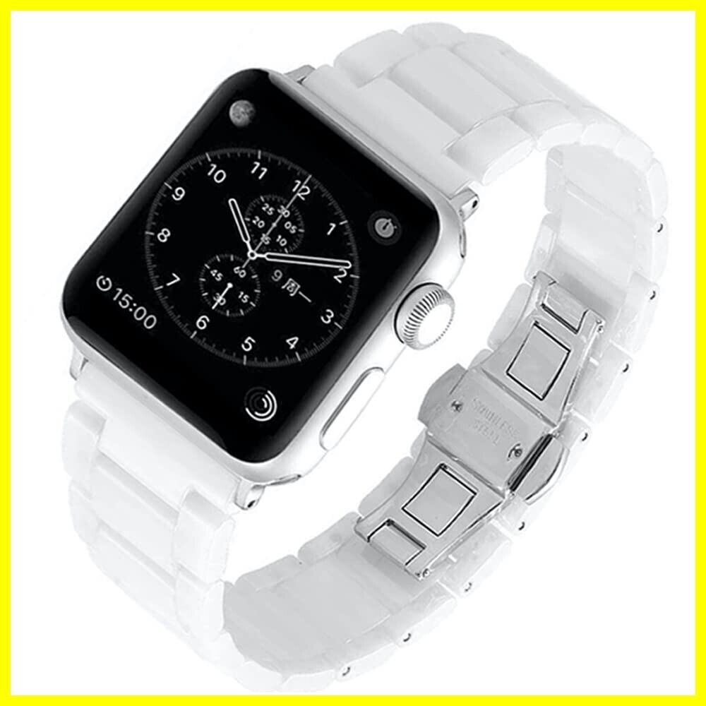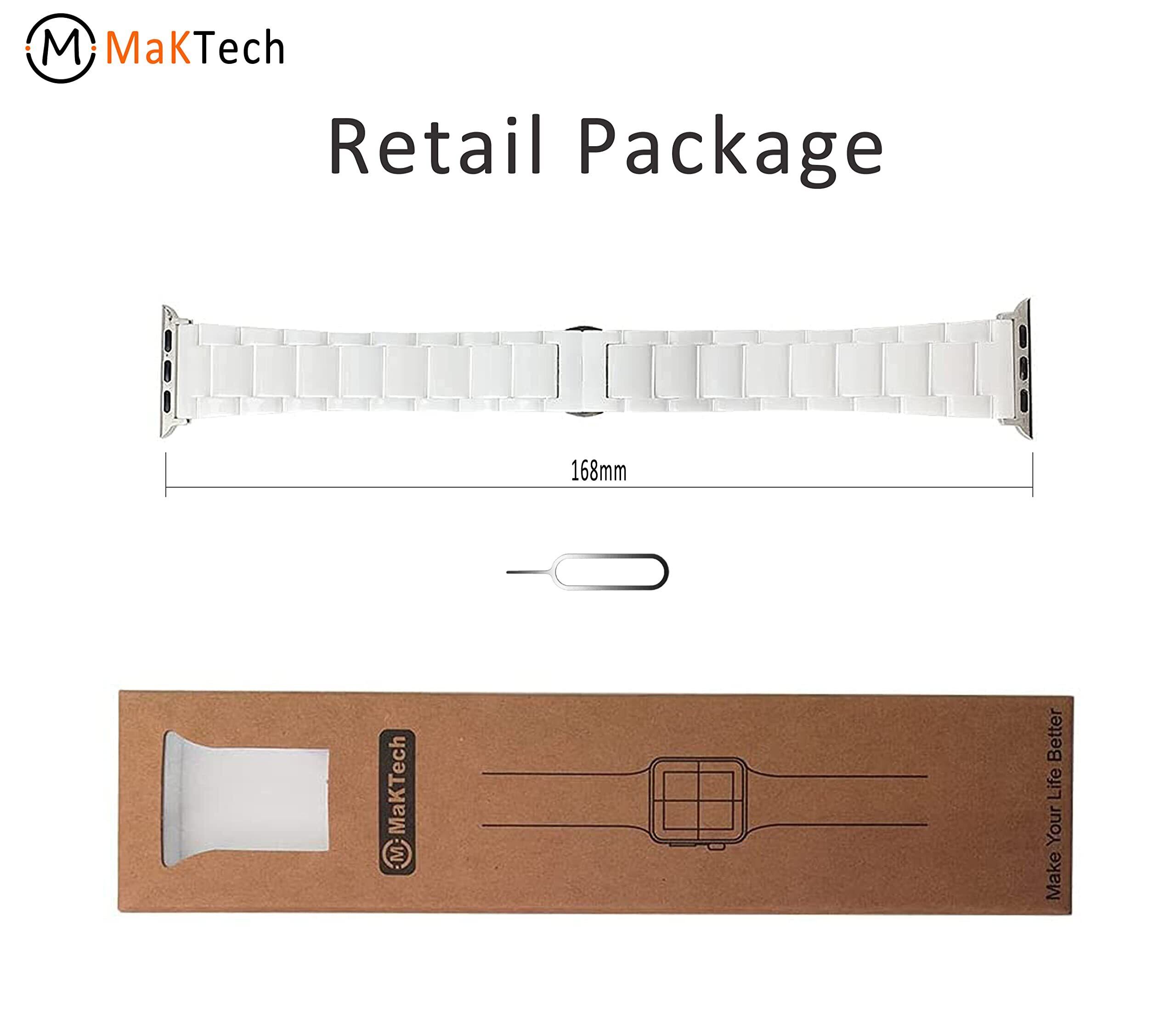 MaKTech セラミック iWatch バンド 凹凸テセレーションリンクストラップ Apple Watch シリーズ 11/10/9/8/7,Ultra 3/2/1,SE 3/2/1 [2025]対応 (46mm/45mm/44mm/49mm,白)
