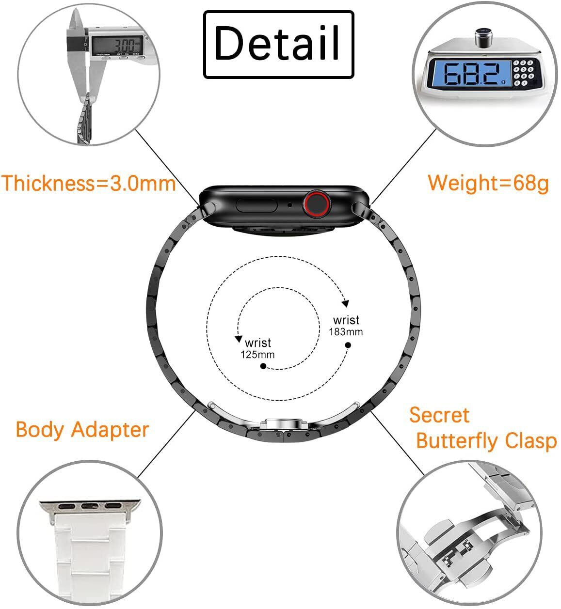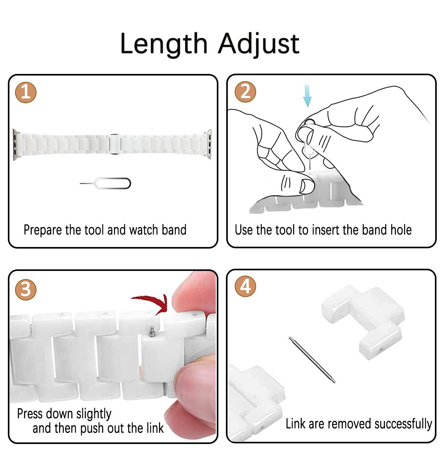 【素材】 - このバンドはセラミックリンク+ 316L ステンレススチールクラスプで作られています。 セラミックの各部分は、経験豊富な職人によってゆっくりと研磨されました。 ラグジュアリー、気品、エレガンスなスタイルで、あなたのスマートウォッチをジュエリーのように見せます。