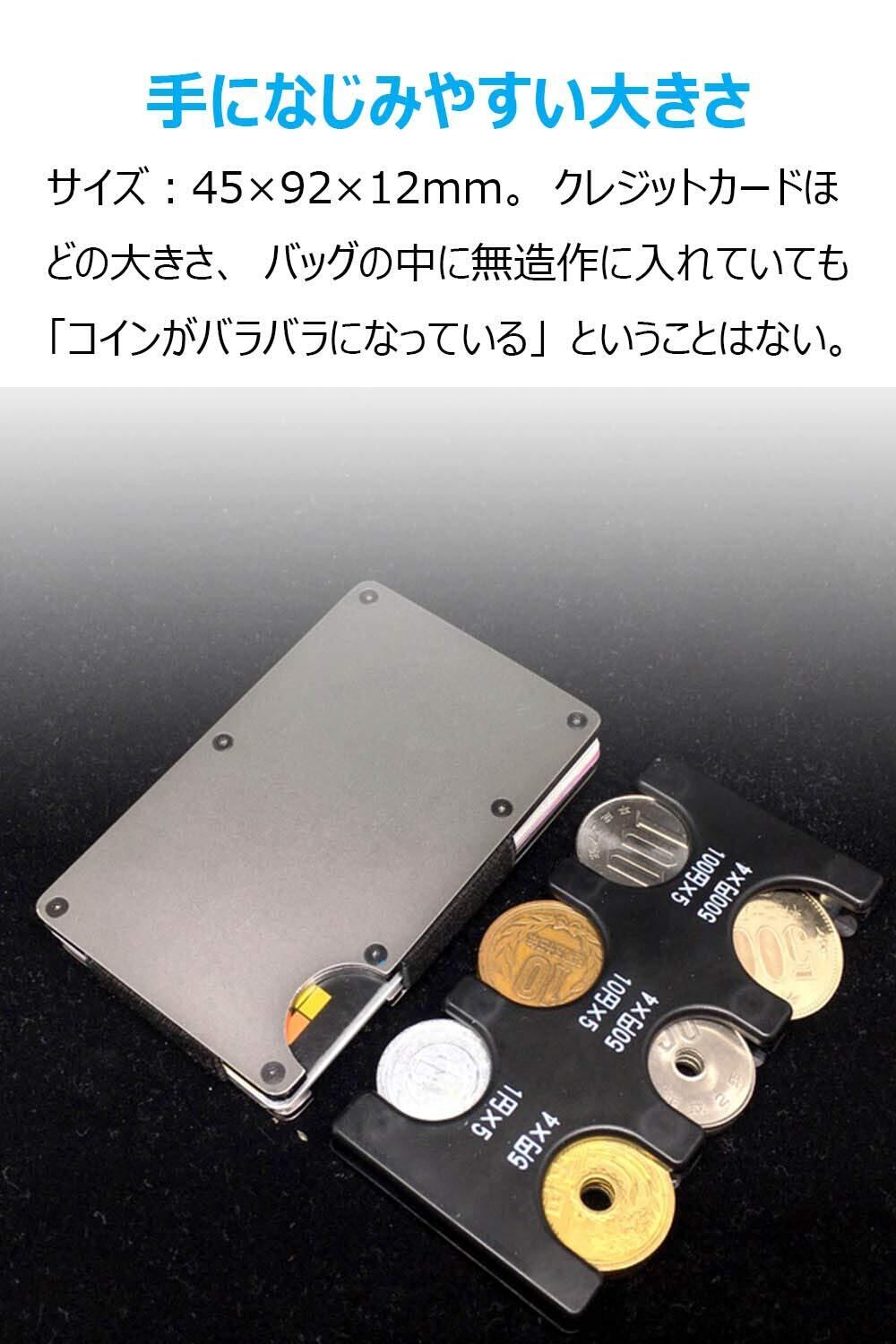 手になじみやすい大きさ:サイズ45 x 92 x 12mm。2775円分収納できます。クレジットカードほどの大きさで、バッグの中に無造作に入れていても「コインがバラバラになっている」ということはない。