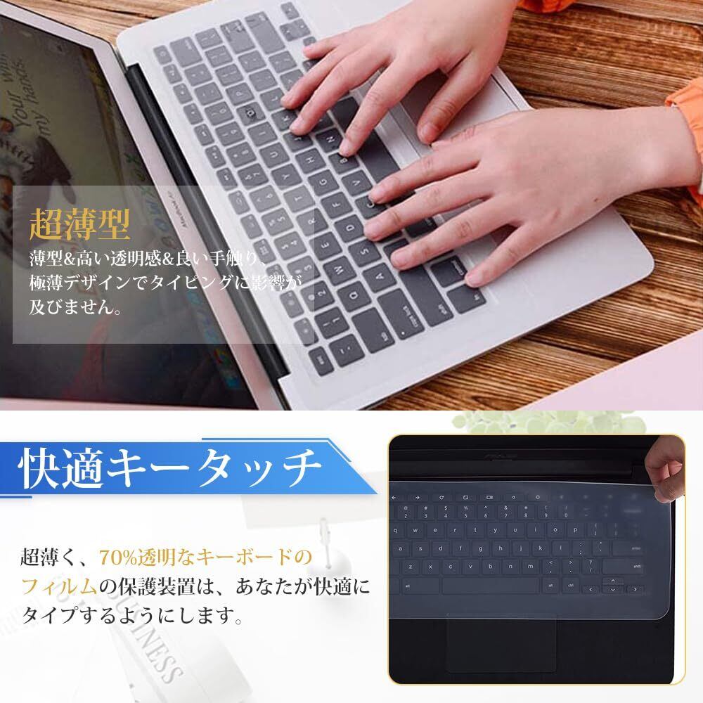 【超薄型】薄型&高い透明感&良い手触り、極薄デザインでタイピングに影響が及びません。シリコン素材で微粘着タイプのため、そのまま貼り付けてご利用が可能です。