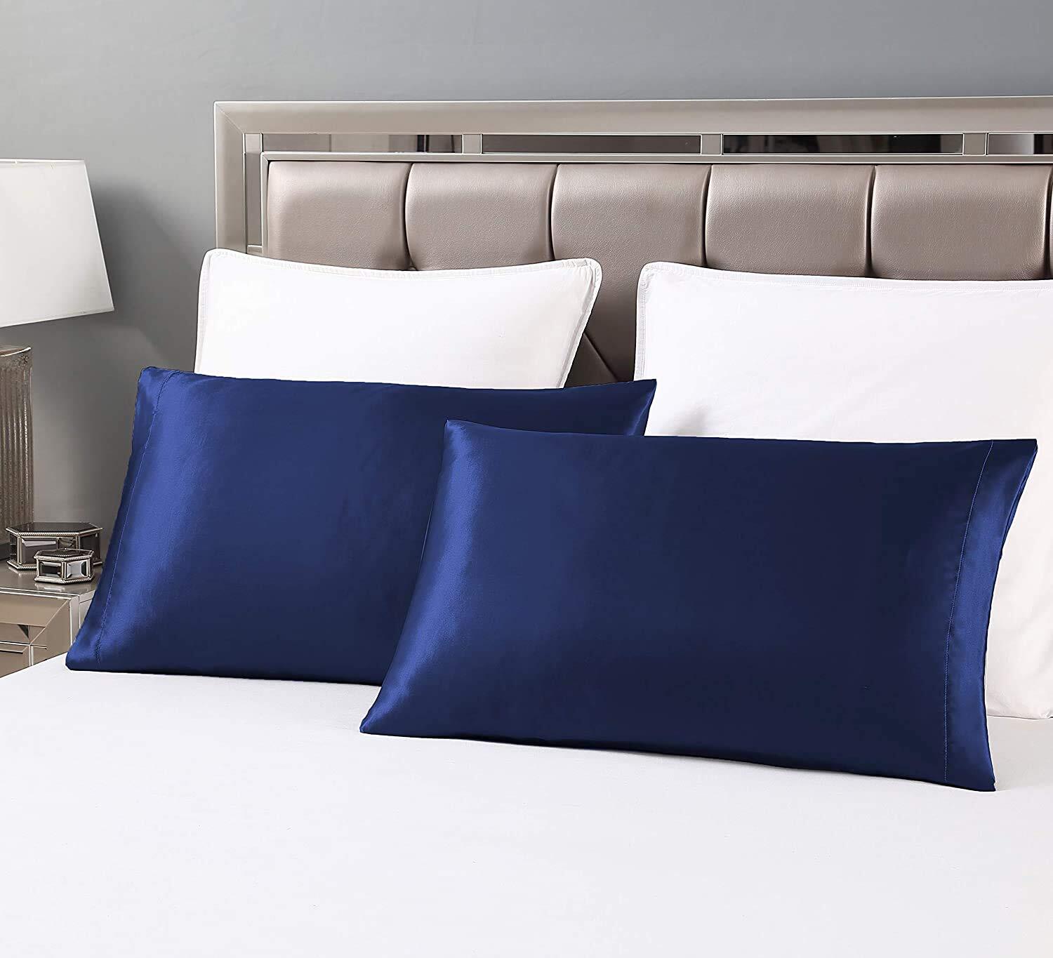 枕カバー 2枚セット サテンの枕カバー 封筒式ピローケース 美肌 美髪 両面シルクタイプ 滑らかな材質 静電気防止 (50*70, 青い)
