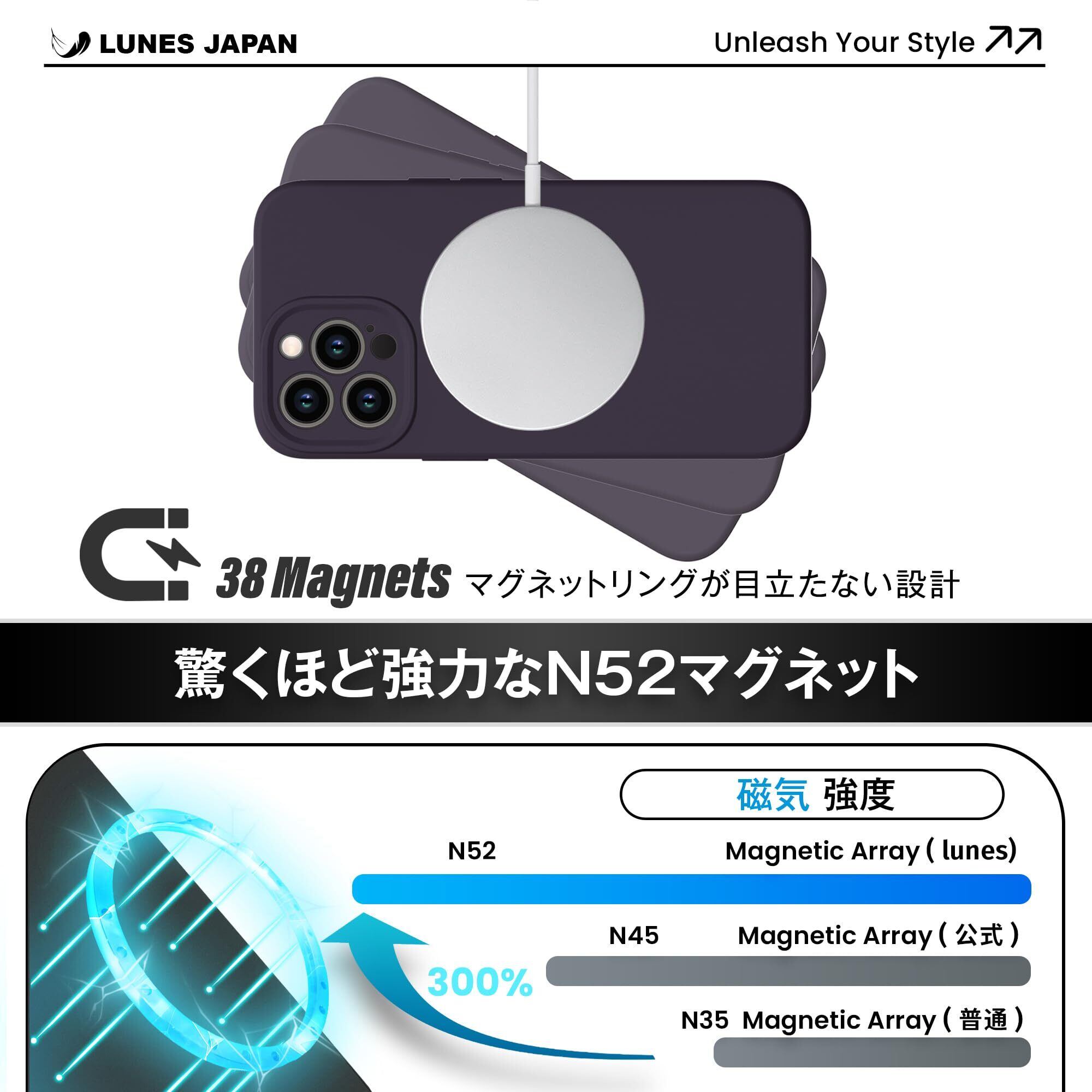 LUNES iPhone 15 Pro ケース Magsafe対応 カメラ保護 スマホケース 耐衝撃 ワイヤレス充電 シンプル 全面保護 いPhone15 プロ 用 マグセーフ対応 シリコン カバー マグネット搭載 指紋防止 黄ばみなし (iphone15Proケース, Purple)