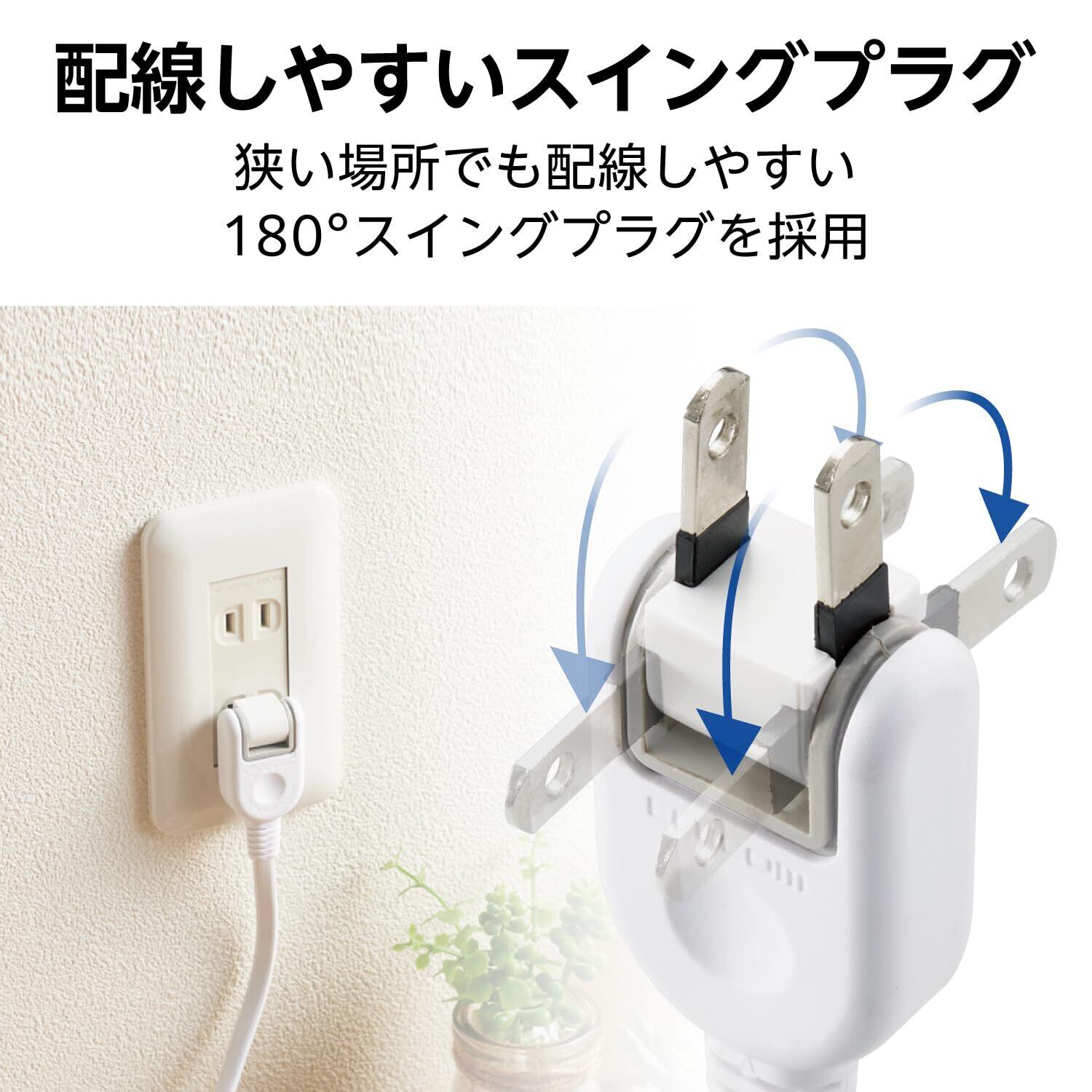 プラグは狭い場所でも配線しやすい180度スイングプラグを採用しています。