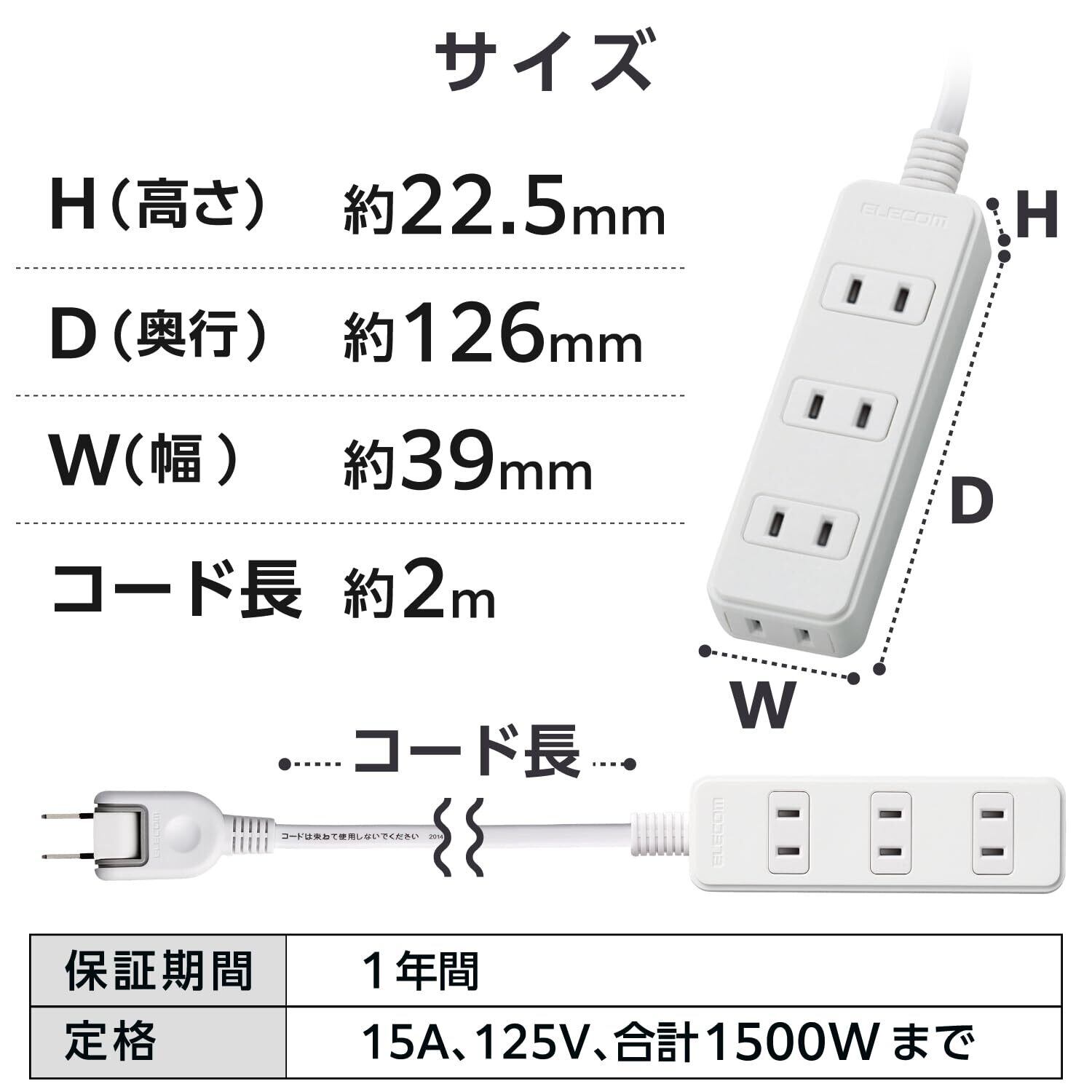 ■外形寸法:幅39mm×奥行126mm×高さ22.5mm ※コード部分及びプラグ部分を除く