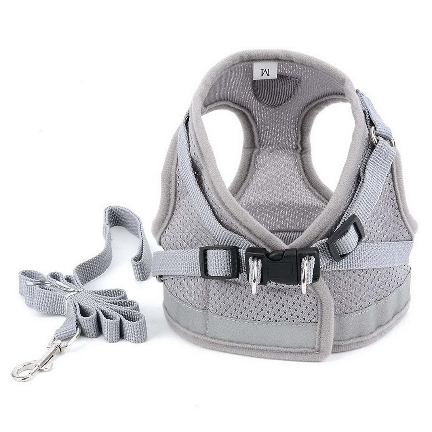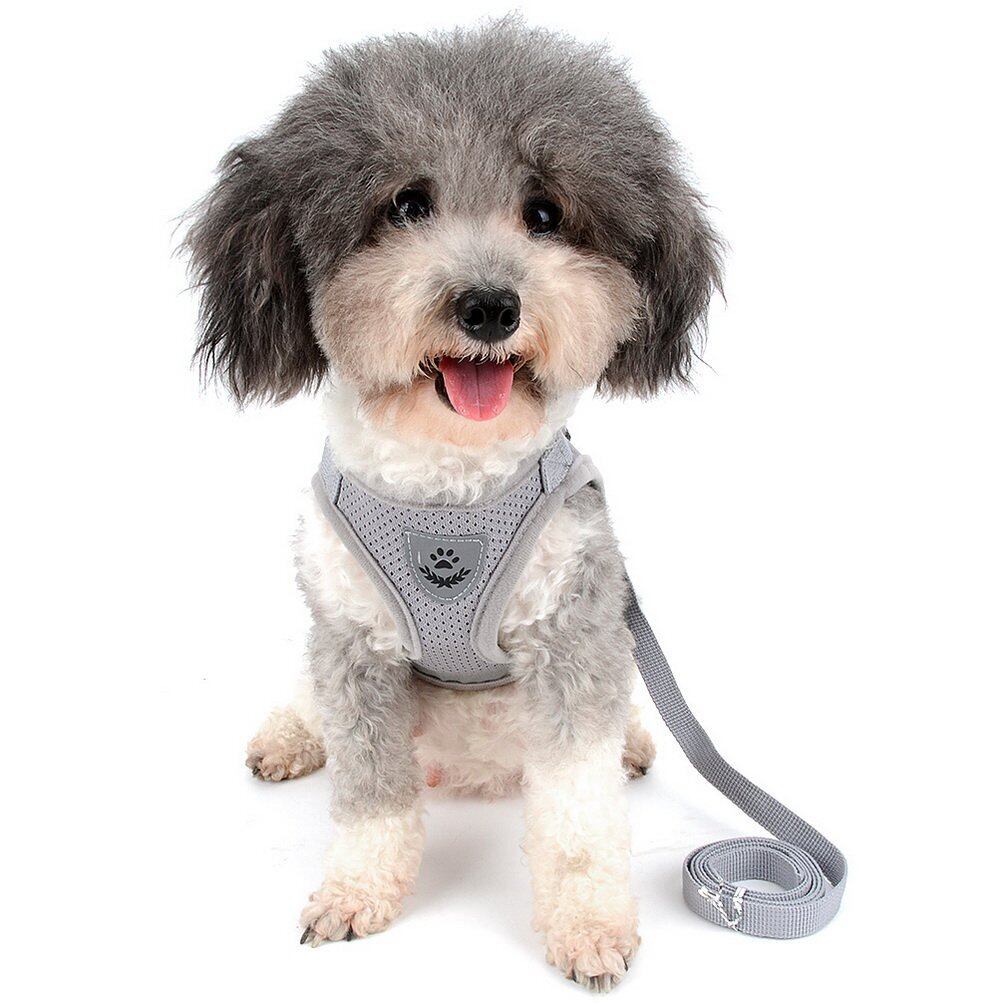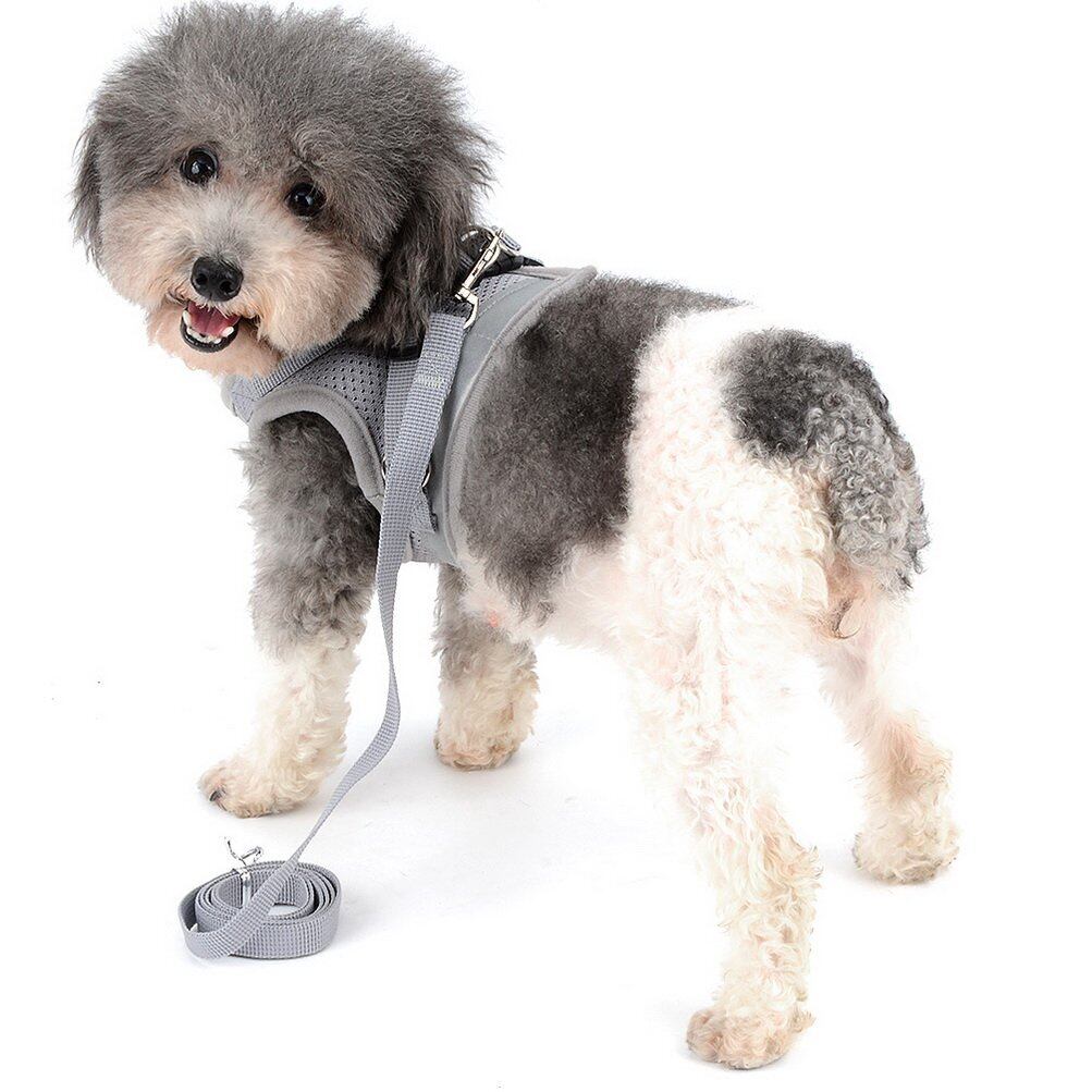 ZUNEA 犬用 ハーネス 小型犬 猫用 ハーネス リード セット 子犬 メッシュ 胴輪 通気性 反射テープ 安全 軽量 ベスト 調節可能 簡単着脱 散歩 訓練 お出掛 4色5サイズ グレー XS