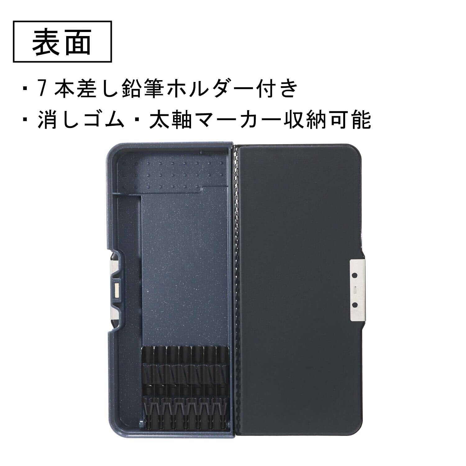 鉛筆ホルダーは切れ目が入っており、細めから太めの鉛筆が7本入る。