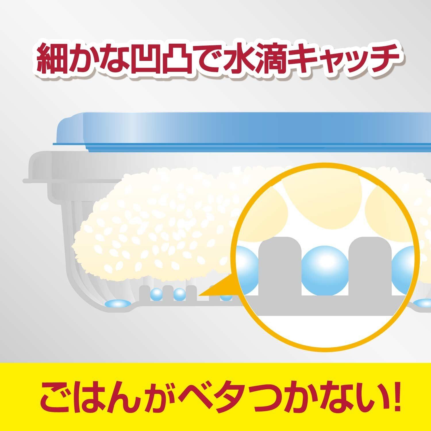 容器のエンボス加工状の底にレンジ加熱時に出る水滴がたまり、ごはんがべたつきません