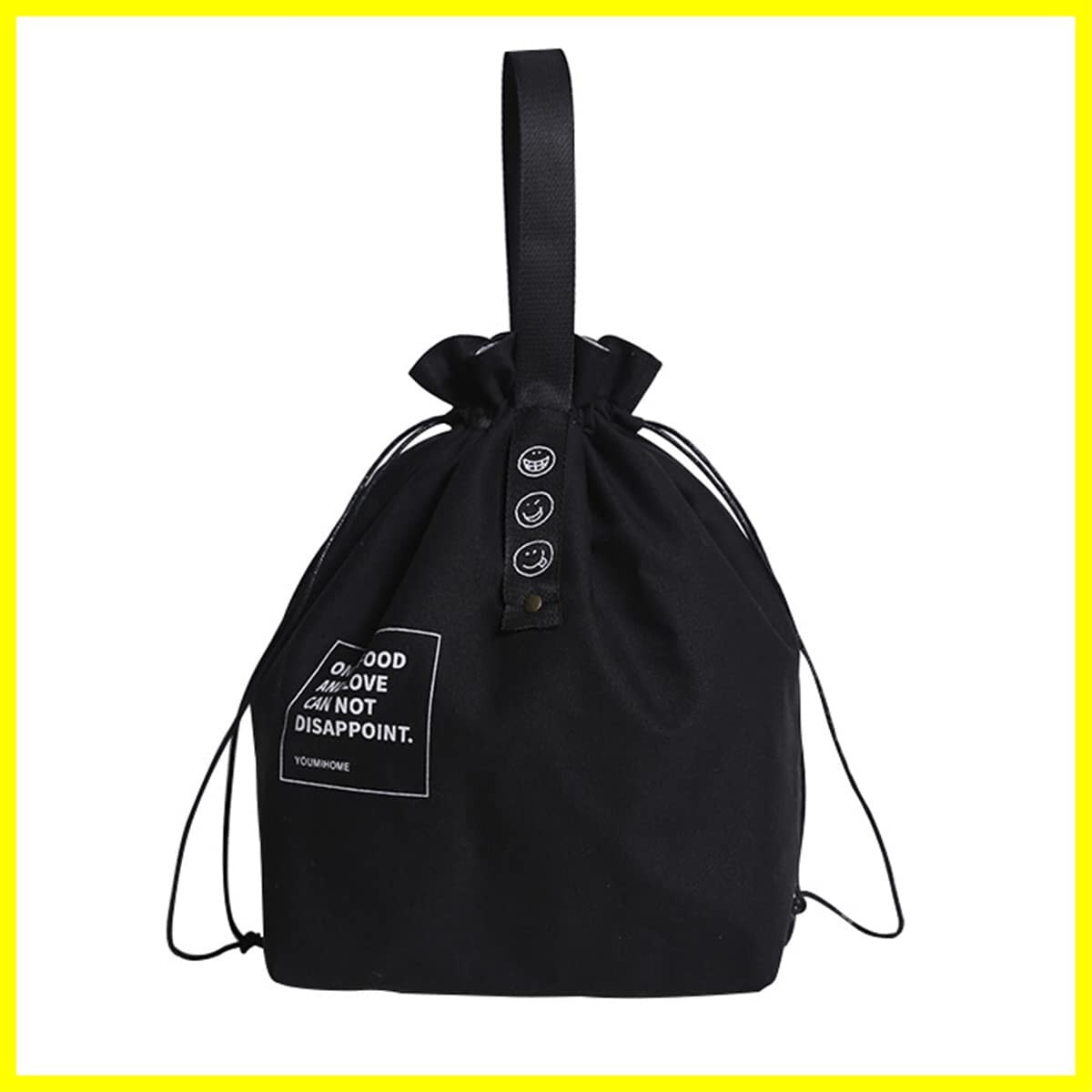GISELLE ランチバッグ 保冷 保温 お弁当 ケース お弁当入れ 大容量 アルミ素材 バッグ 巾着 軽量 自立 クーラーバッグ アウトドア 男女兼用 運動会 通勤 通学 (Black/ブラック)