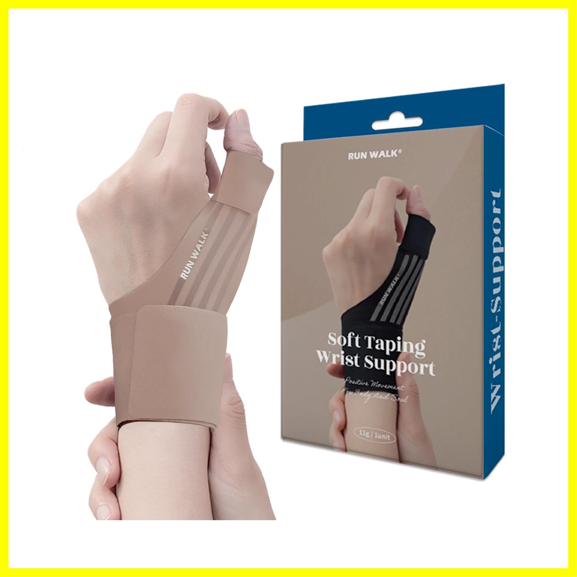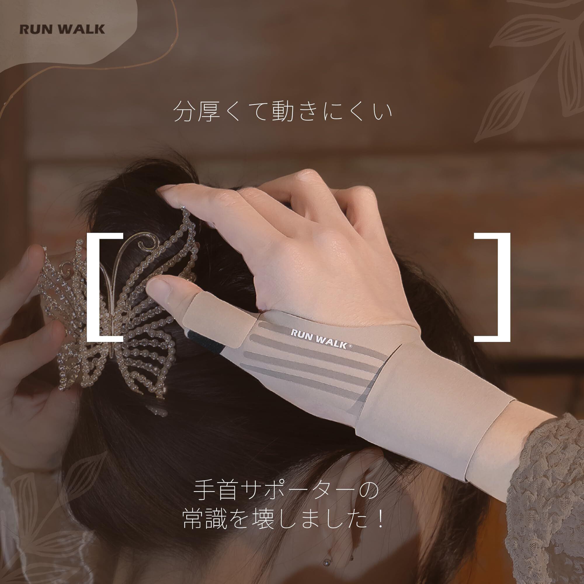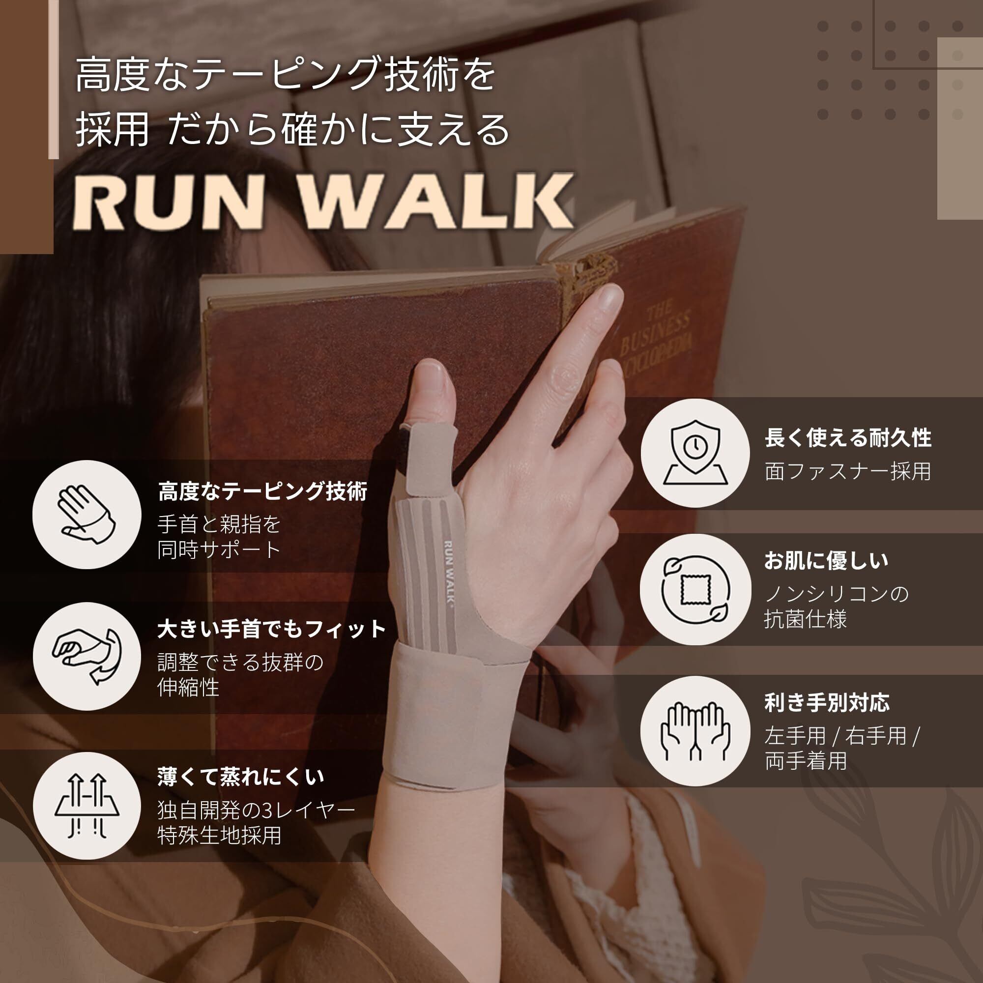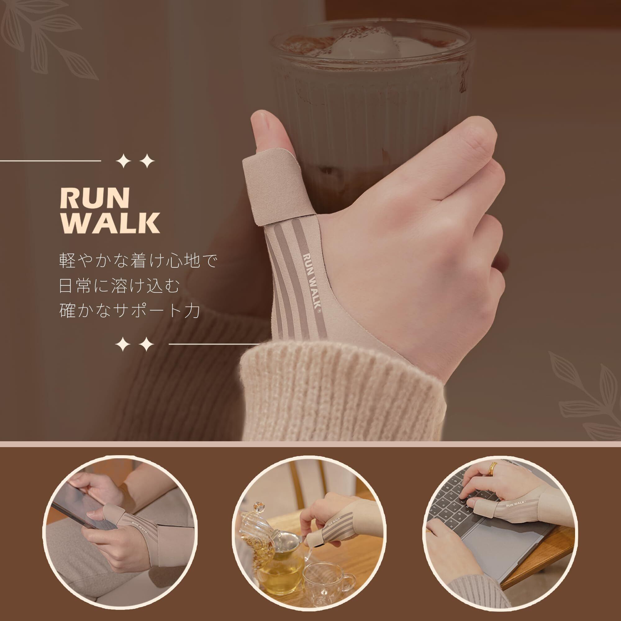 親指 手首 サポーター RUNWALK ソフトテーピング 付け根サポート 薄手3D 添え木タイプ 抗菌 クール素材 (ココアミルクミニ-左手用)