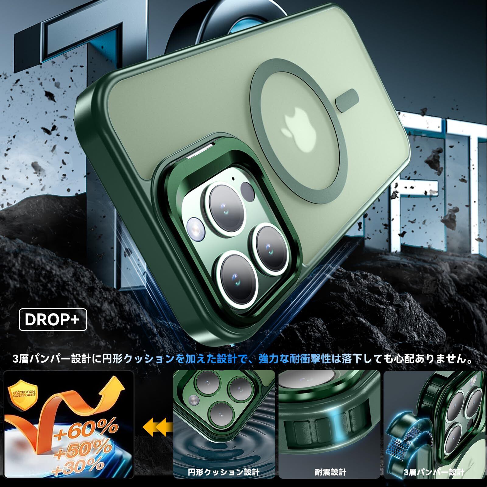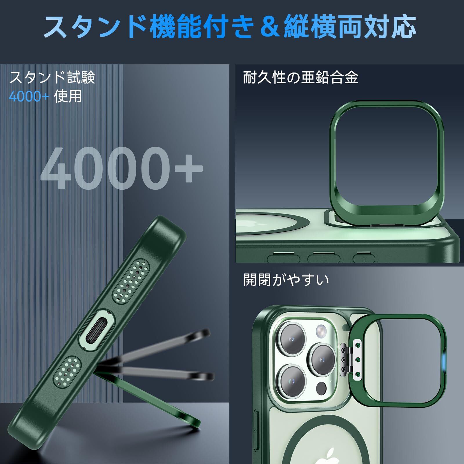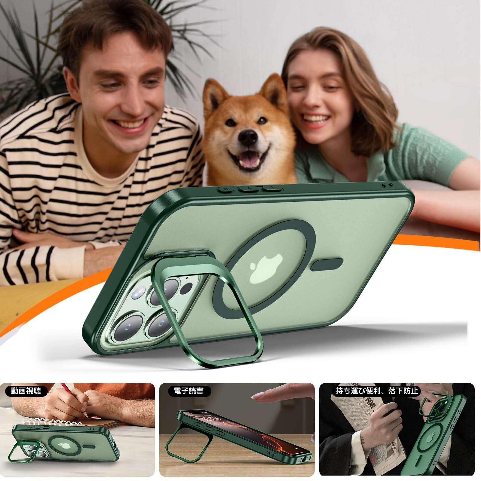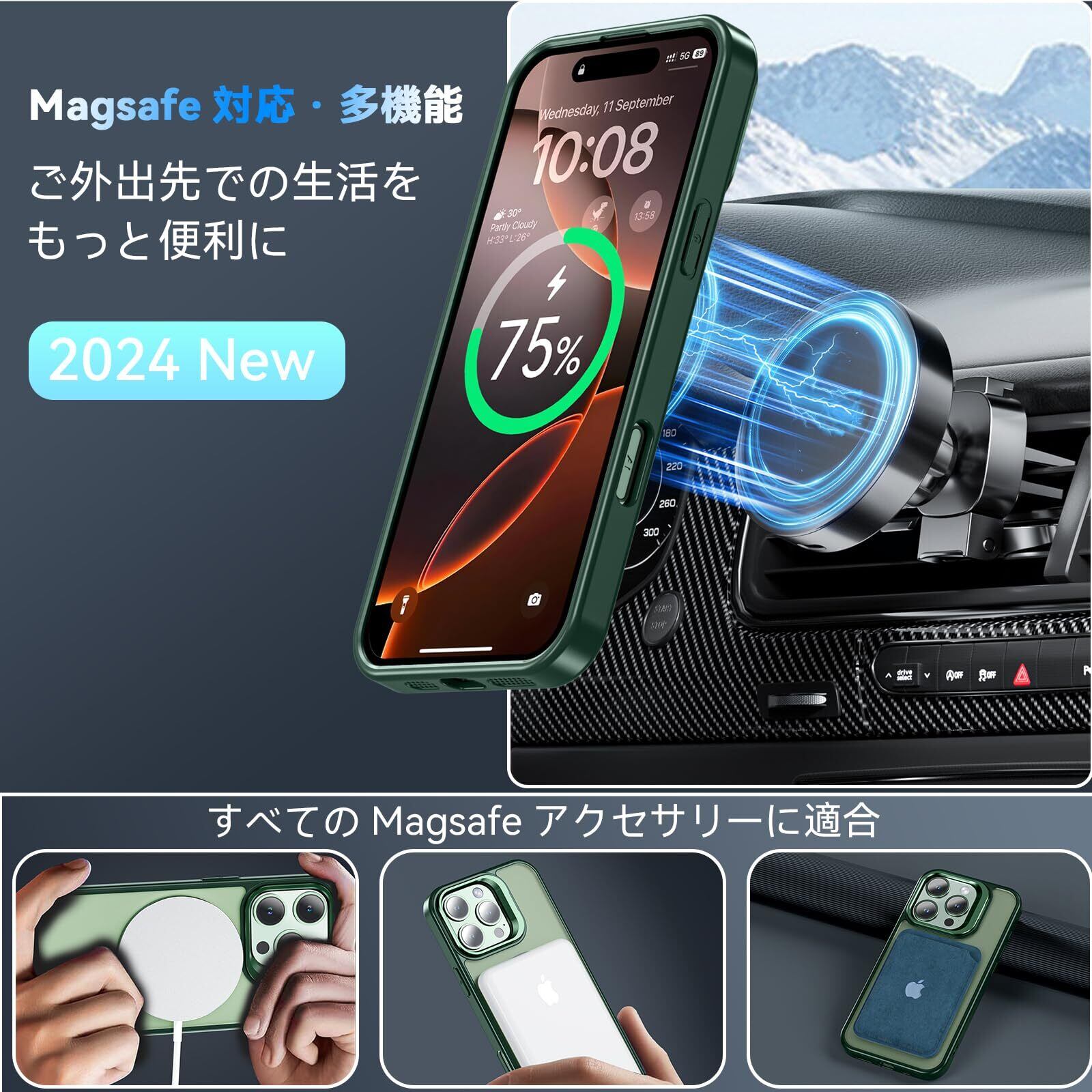 【MagSafe対応&スタンド機能】ケース内部には2024年に新開発された強力なマグネットが搭載されており、吸着力と安定性が向上し、MagSafe充電対応で差し込みのいらない超簡単・超高速充電を実現しています。MagSafe対応アクセサリーもいろいろな iPhone 16 Pro Max ケース!また、カメラの外枠は頑丈なアルミニウム合金材料を用いて開閉しやすい支持枠を作り、スタンドの機能を与え、お好きな角度を調整でき、両手が解放され、いつでもどこでも動画視聴便利です。