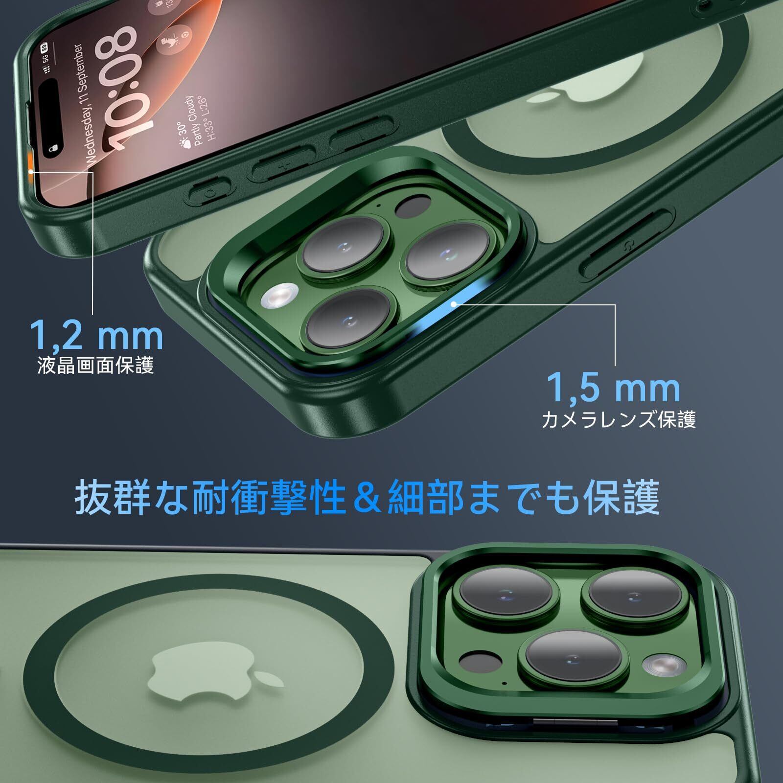 【抜群な耐衝撃性&細部までも保護】厳選されたPCとTPU素材を採用し、一般的な素材よりもさらに耐黄、耐熱、耐スクラッチ、超高い実用性と耐久性で輝き続ける アイフォン16プロマックス ケース です。また、カメラレンズより1.5mm、画面より1.2mm高い保護設計を採用し、スマホのレンズと画面が地面に接触しないようにし、うっかり落としても衝撃を吸収し、角までしっかり保護でき、超耐衝撃性の全面保護型の いphone16 pro max ケース です。