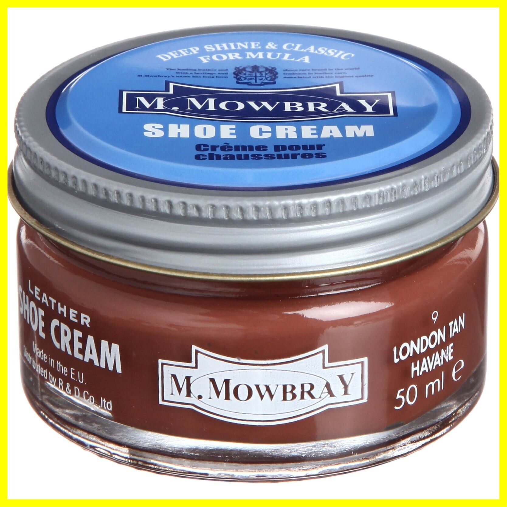 M.モゥブレィシュークリームは靴の歴史が長く、文化として根付いている欧州の伝統的製法とノウハウを今に伝える本格的靴クリームです。このシュークリームの特長は優れた浸透性により、潤いと栄養を与え、靴を長持ちさせる高い品質にあります。そして、同時に重厚感のある光沢、シルキータッチななめらかさと伸び、しっかりとした補色力といった使用感のよさとフィニッシュ(仕上り)が、プロや愛好家に支持され人気を博している理由です。製造は熟練の職人によって調合がなされ、さらにビンへの充てんも1つ1つ彼らの厳しい目でチェックをしながら丁寧に行われています。キャップを空けた時、クリームそれぞれの表情が違う、手づくりのぬくもりと感覚がM.モゥブレィシュークリームの最大の特長です。しかしハンドメイド的な製法であるがために、M.モゥブレィのシュークリームは大量生産ができません。近年では大型設備によって量産された、無機的で味気ない靴クリームが多い中、M.モゥブレィ・シュークリームは、昔ながらの伝統的製法を堅持し続けています。そして「クオリティ(品質)を常に向上したい」という伝統と向上心はブランドの誇りとこだわりです。純粋に「靴を大切にして欲しい」とう職人たちの気持ちが、このクリームに込められています。M.モゥブレィのシュークリームは品質・伝統・精神を現代に受け継いだエキスパートなシューケアブランドです。