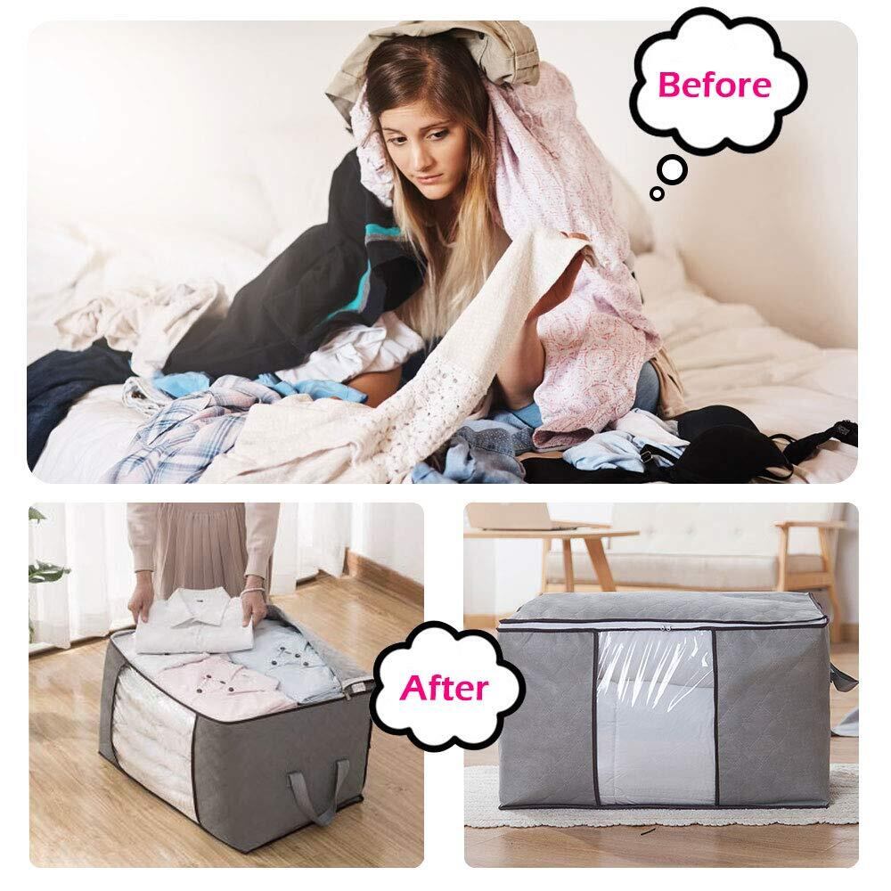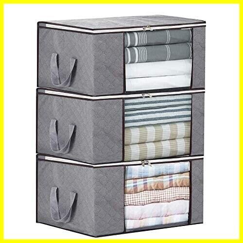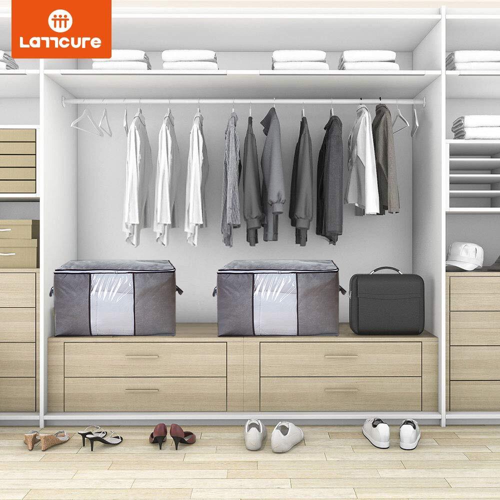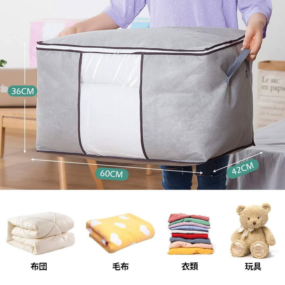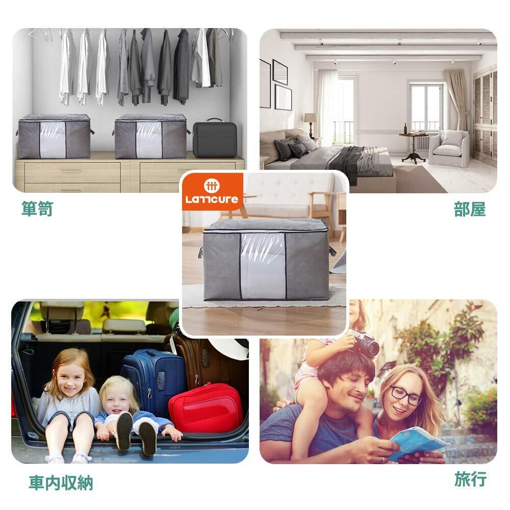 LATTCURE 布団収納袋 収納ケース 3個セット ふとん収納 不織布 大容量 布団収納バッグ 引越しバッグ 折り畳み式 60×42×36cm 透明窓 省スペース 衣類収納 洋服収納 引っ越し 押し入れ 防塵/防湿/防カビ/防虫
