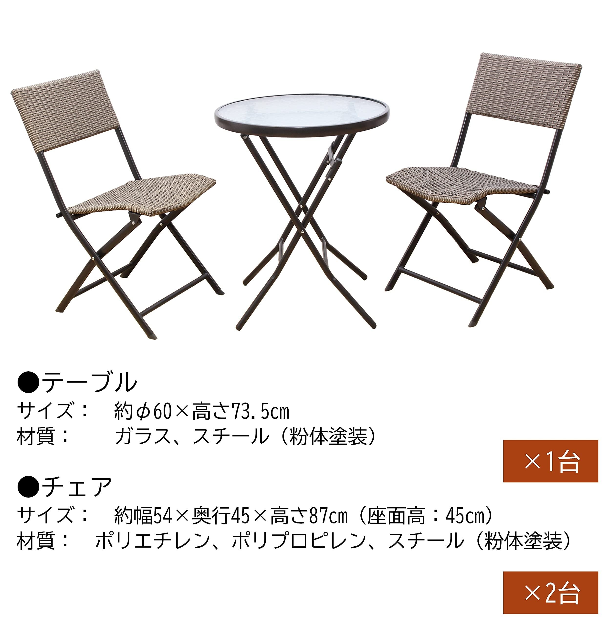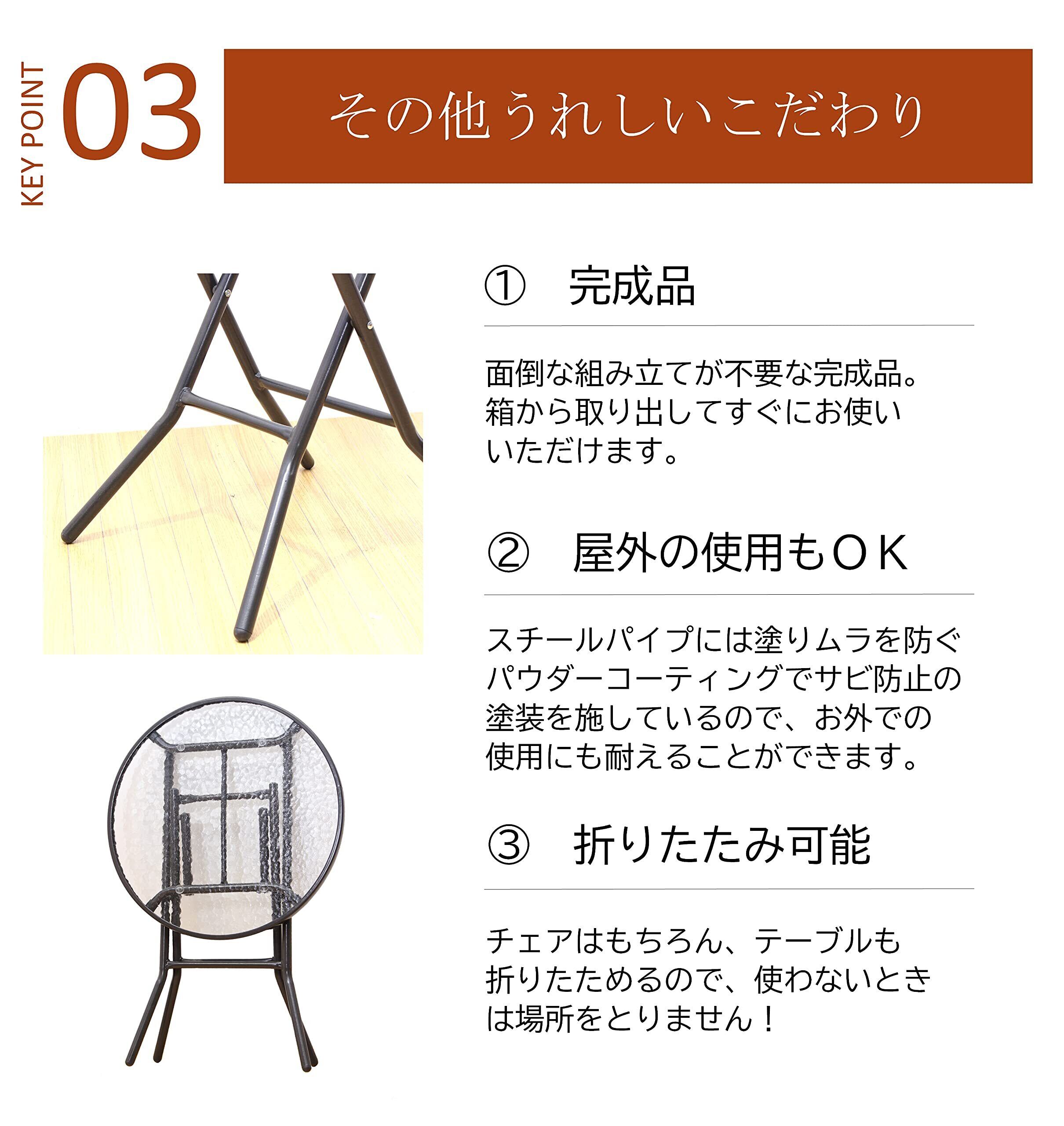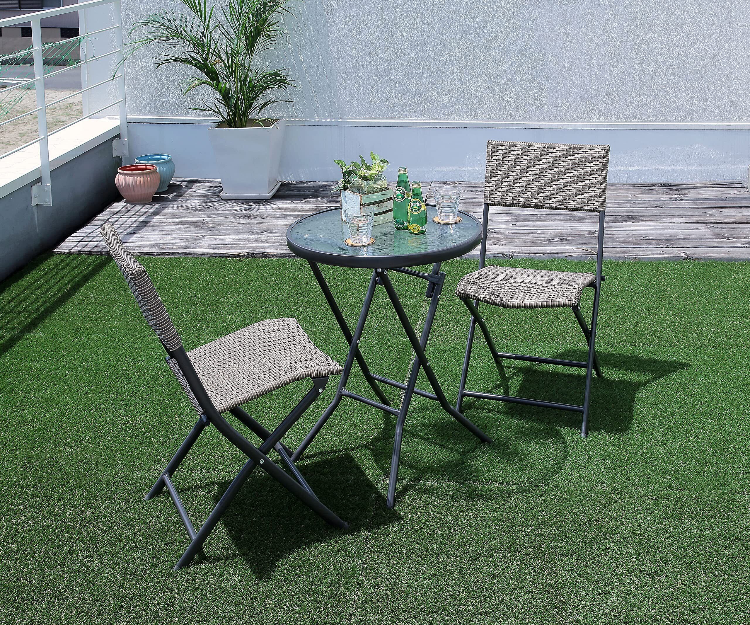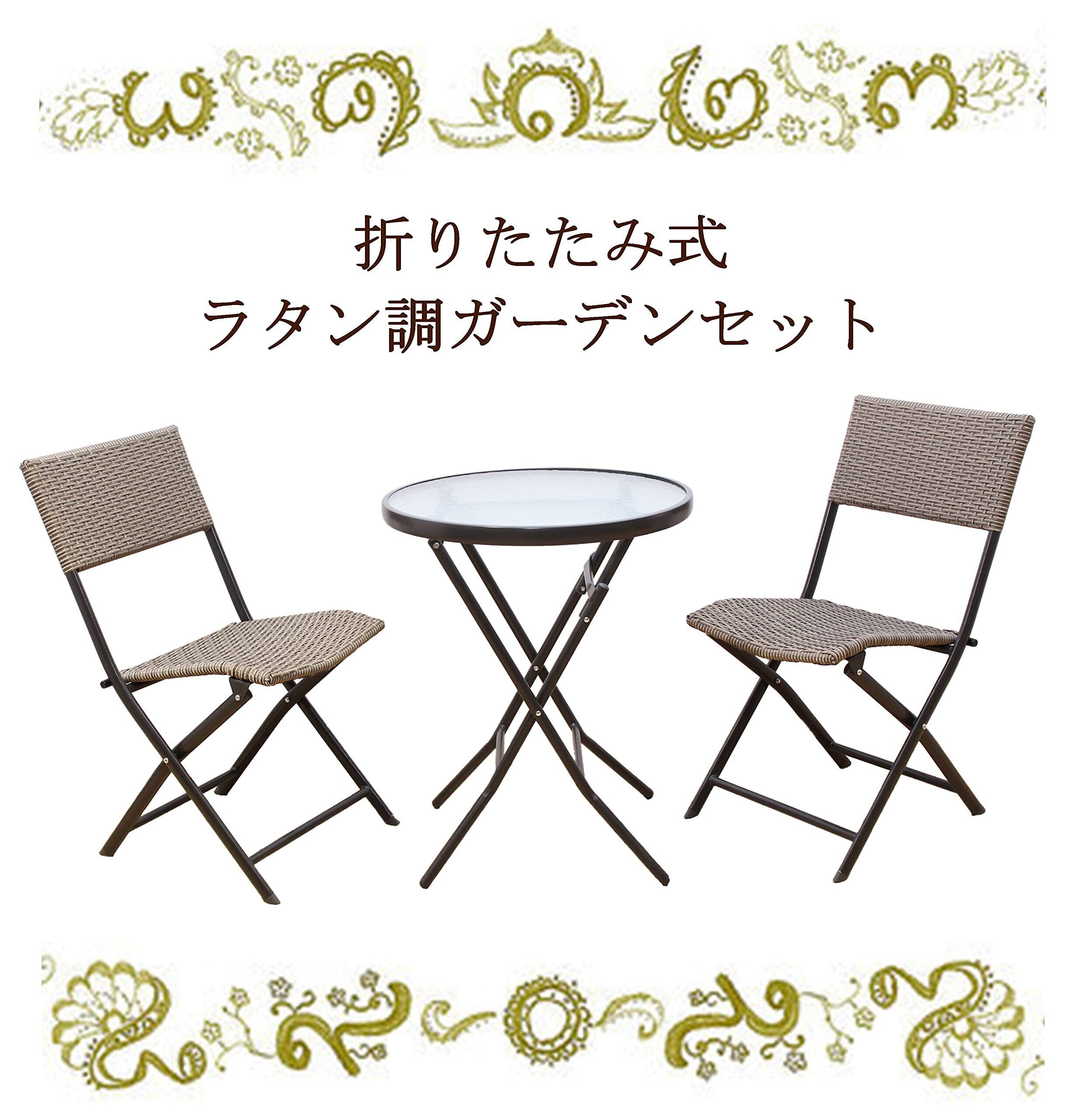 リビングアウト(Living Out) ガーデンテーブルセット 折りたたみ ラタン調 完成品 ガーデンテーブル 折り畳み ラタン調チェア 波目がおしゃれな天板 強化ガラス