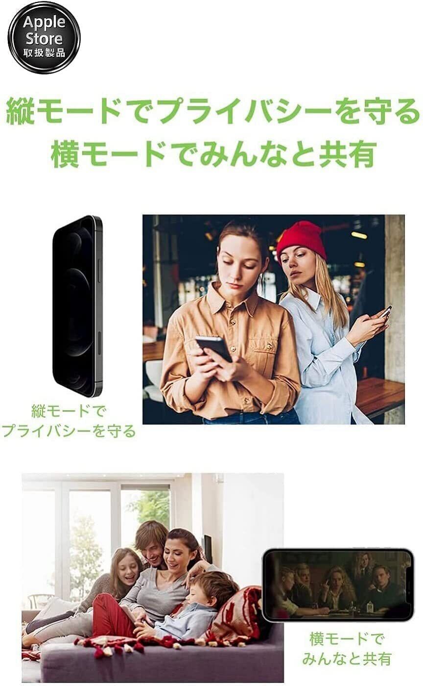 iPhone 12 Pro / 12用のスクリーン保護フィルム・強化ガラスです。抗菌コーティングにより、画面上の細菌の増殖が99%減少。強化ガラスを採用しており、鍵やコインなどの硬い金属と接触しても表損傷から画面を保護することができます。プライバシーを使用するとポートレートモードでプライバシー保護が可能で、スマートフォンを横向きモードに切り替えるとプライバシー保護を解除することができます。