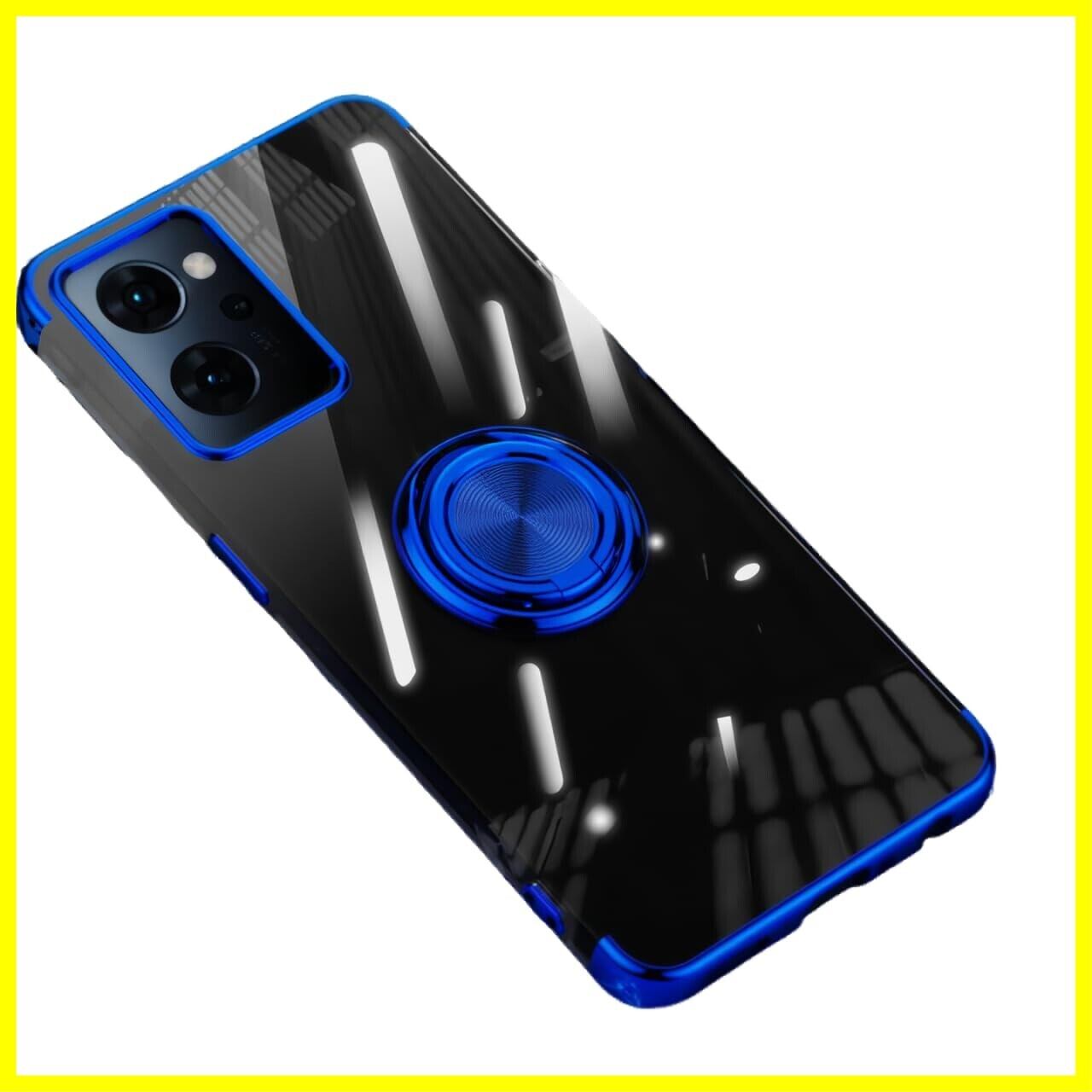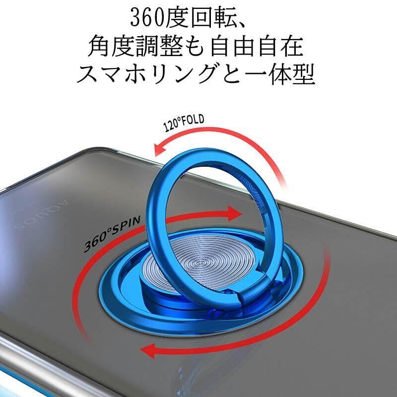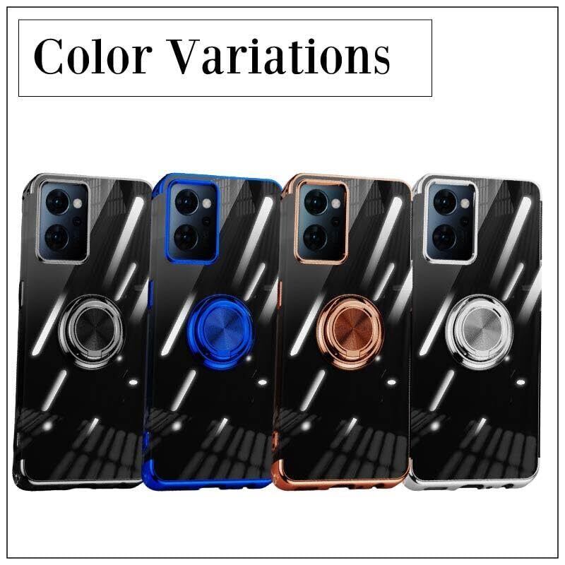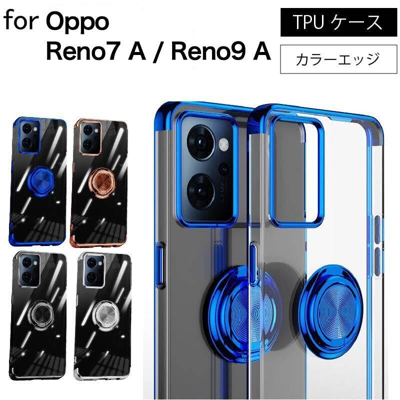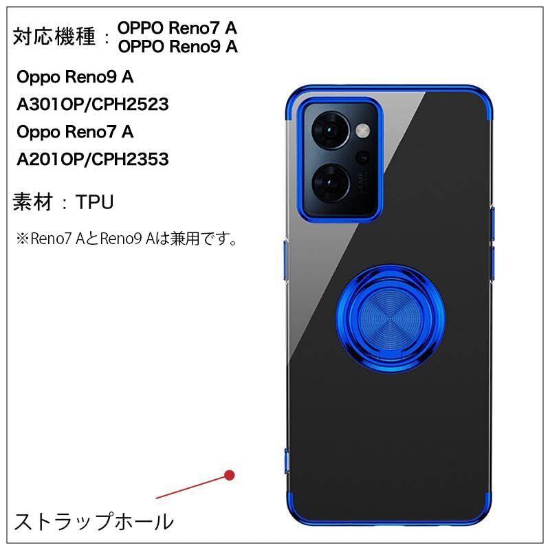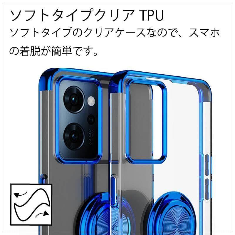OPPO Reno7 A Reno9 A Reno7A Reno9A 対応 ケース ソフトケース リング付き 車載ホルダー対応 360°回転 スタンド機能 TPU クリア 耐衝撃 衝撃吸収 ケース カバー 保護ケース サイドメッキ加工 ストラップホール付き クリアケース スマホケース スマホカバー ブルー 互換性あり