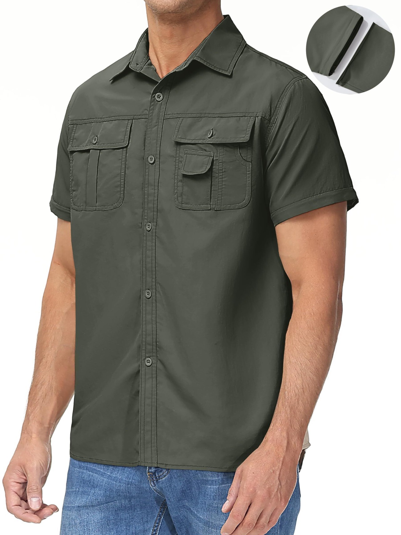 【着脱可能なジッパースリーブ】コンバーチブルシャツの袖は取り外し可能です。天気の変化と自分の愛好によって、いつでも半袖になることができます