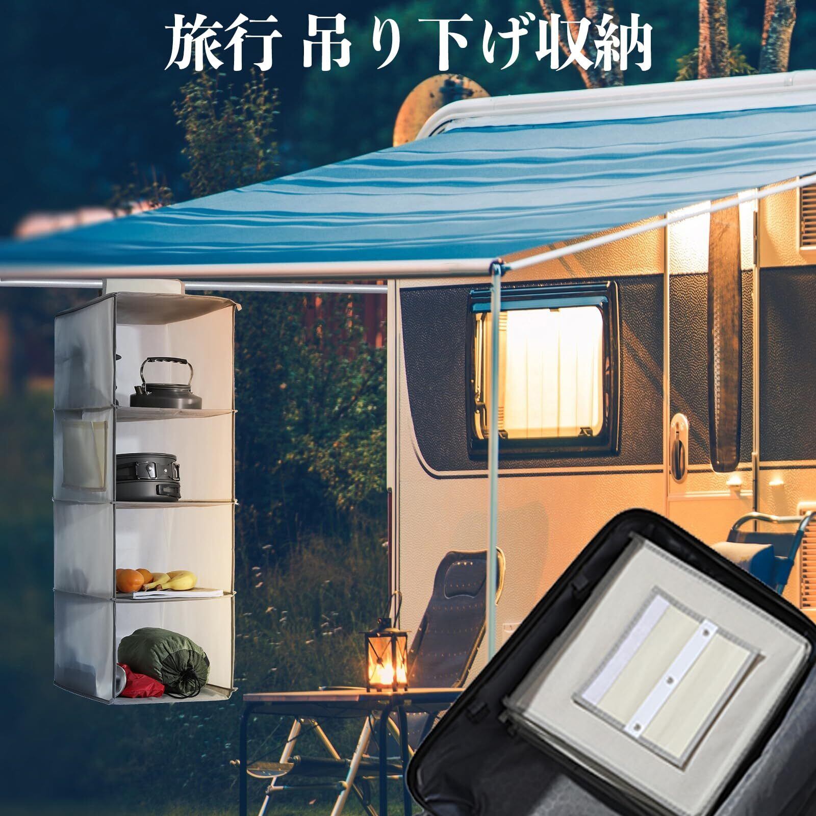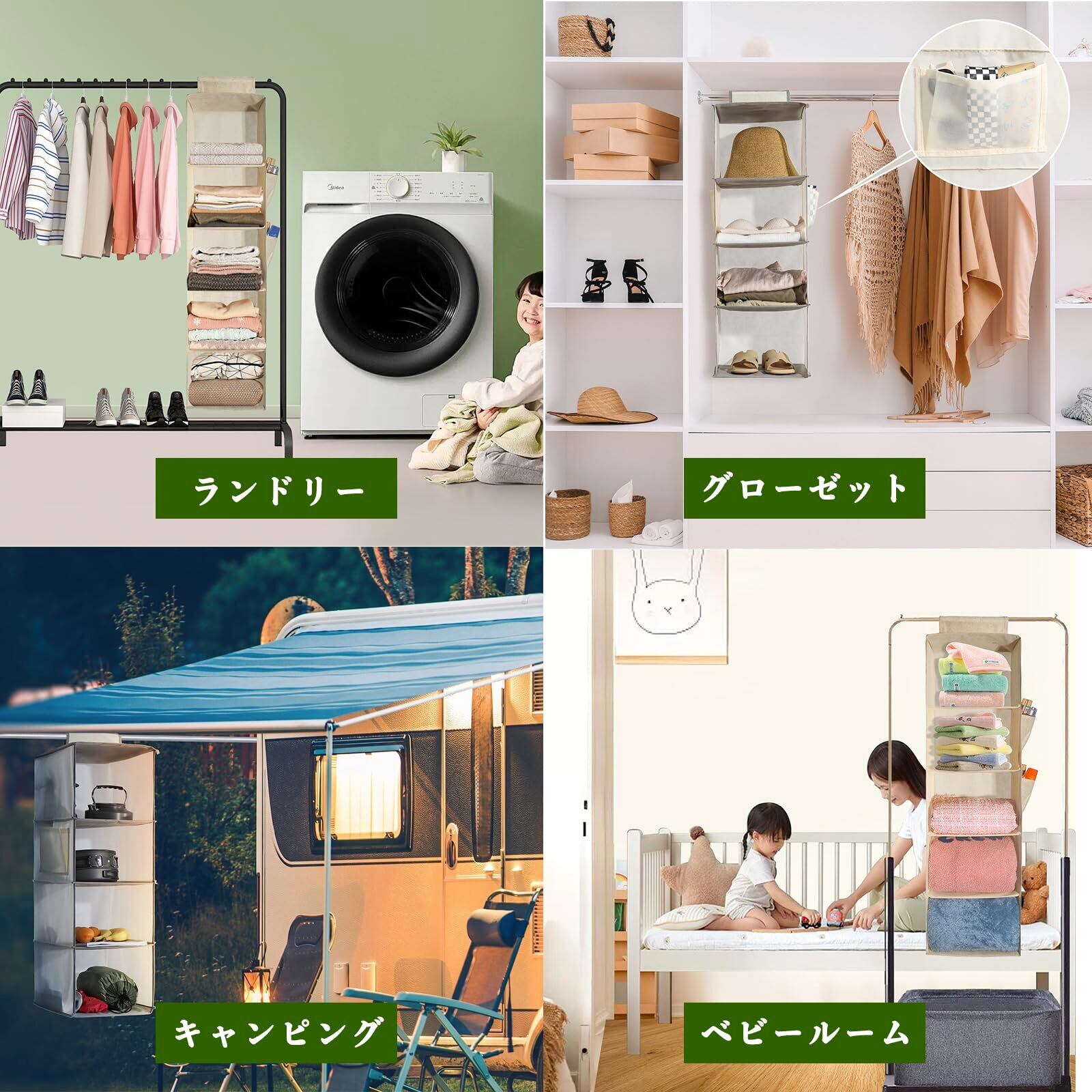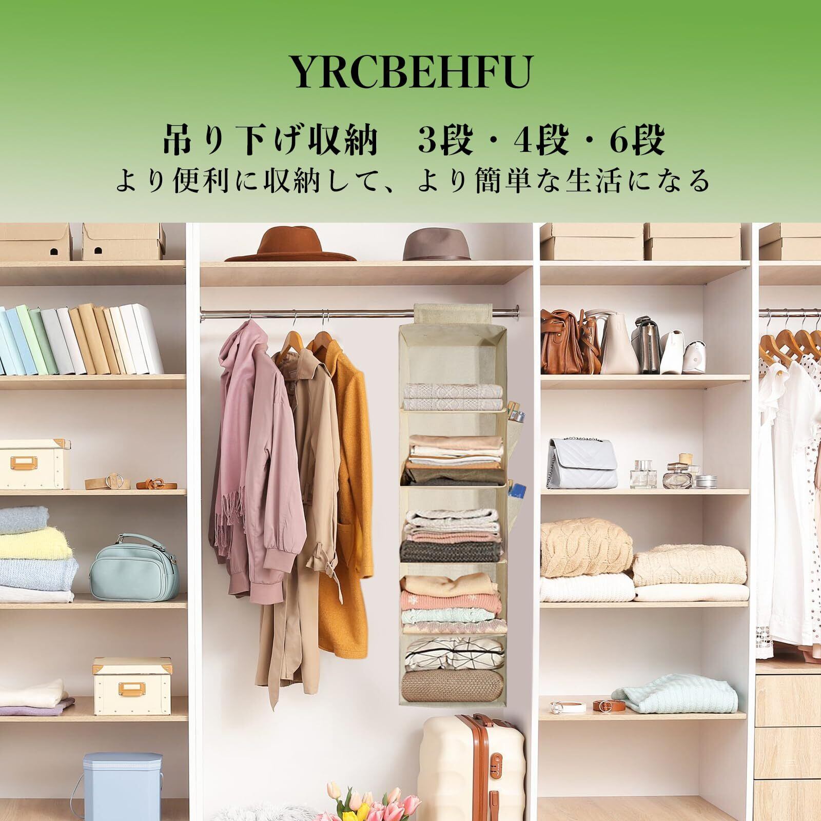 YRCBEHFU 吊り下げ収納 【最新強化版】 クローゼット 収納吊り下げ 4段 PPボード 大容量 衣類ラック 帽子/鞄 収納/旅行/出張 取付簡単 折り畳み式(ベージュ、27x27x80cm)
