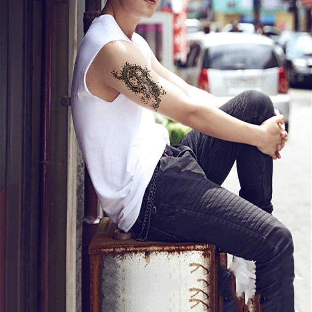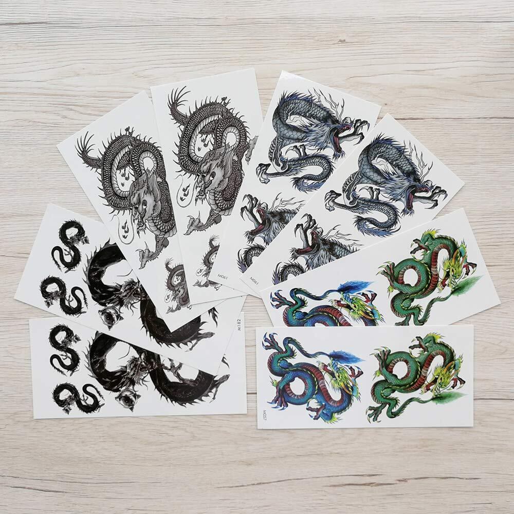 Yesallwas タトゥーシール 龍 竜 飛竜 8枚セット 入れ墨シール タトゥーステッカー ボディーシール 刺青シール メンズ 防水 長持ち (C.8枚セット(9×19cm)