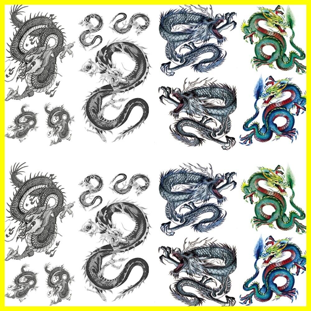 【セット内容】タトゥーシール 龍 竜 飛竜 、8枚セット。4種類、各2枚。
