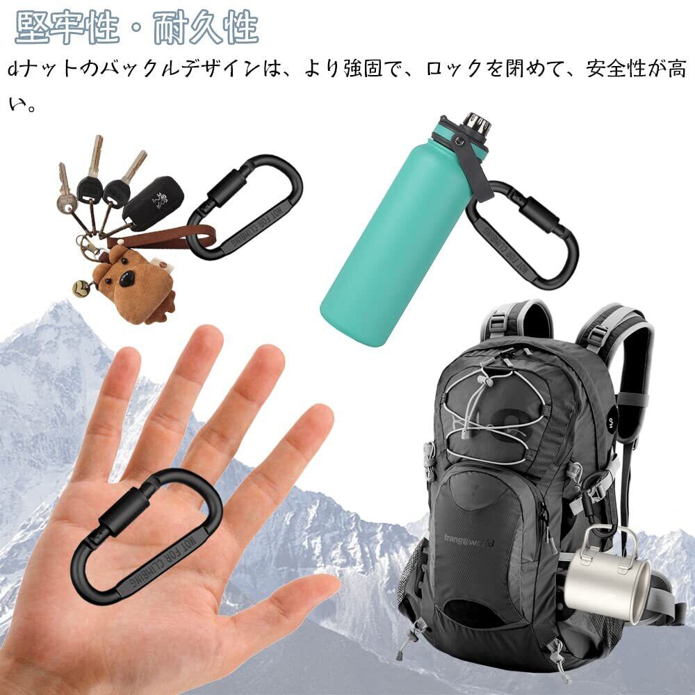 ハイキング/キャンプ/釣りなどのアウトドア活動中に、小さなバッグ、ボトル、小さなトーチをバックパックに掛けるために使用することができます。 また、日常のファッションアクセサリーとして、鍵や水筒、マグカップなどの小物を吊るすのにも大変便利です。[注意】カラビナは小さいので、大きいものや壊れやすいものをぶら下げないでください、登山や大きな安全器具にはお勧めしません。
