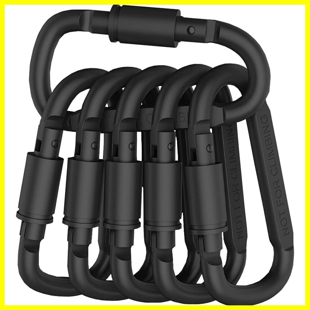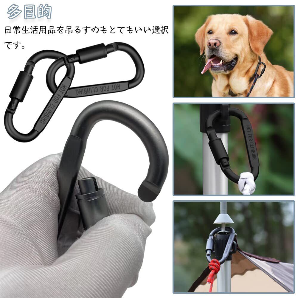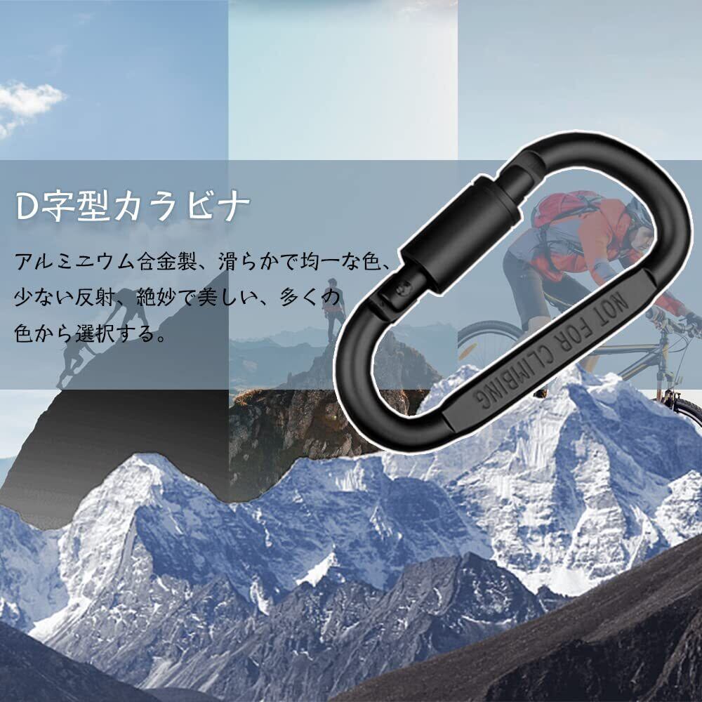 仕様:D字型カラビナ6個セット 素材:アルミニウム合金 カラー:ブラック 表面処理:酸化プロセス 形状:ロック付きD型 。