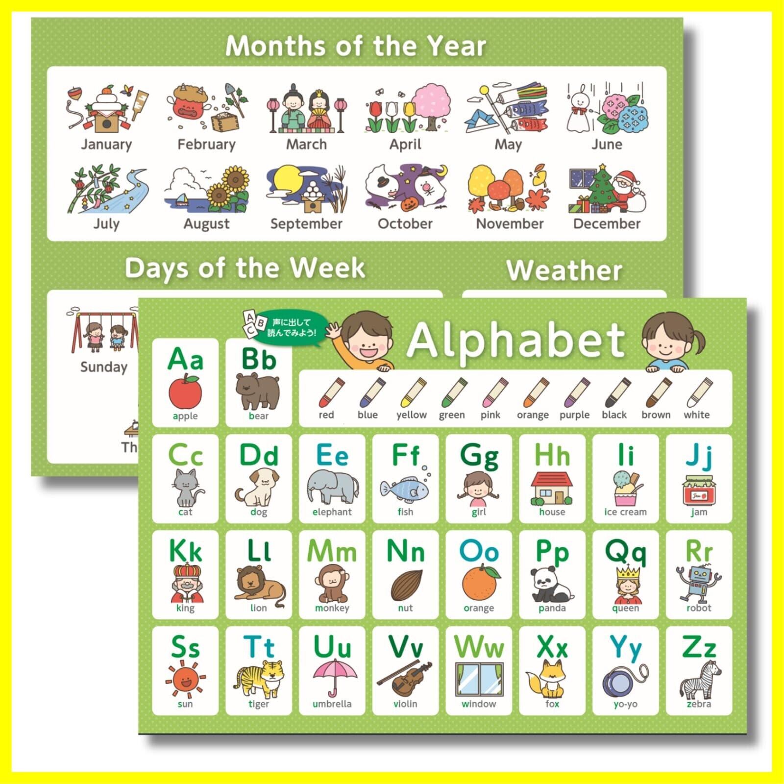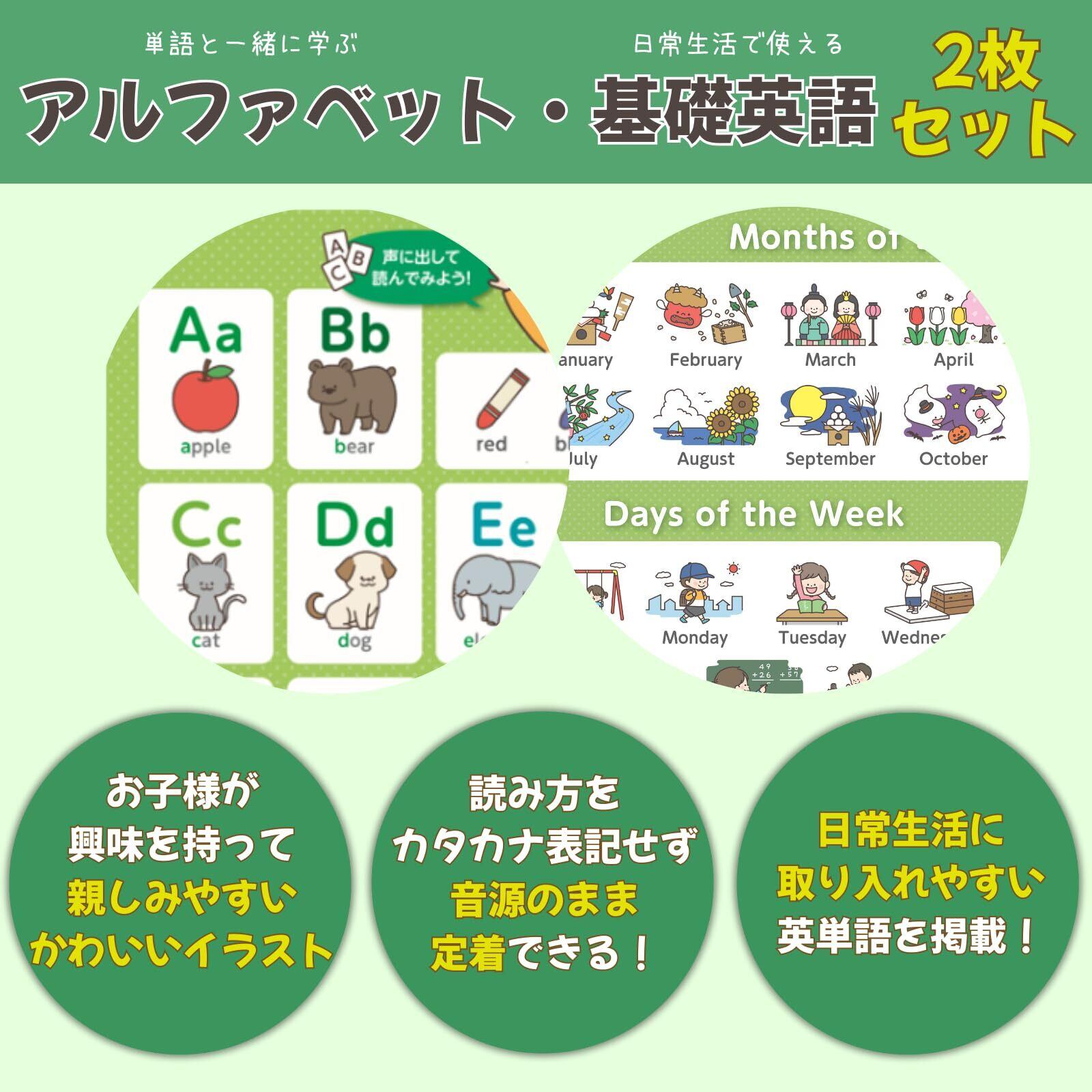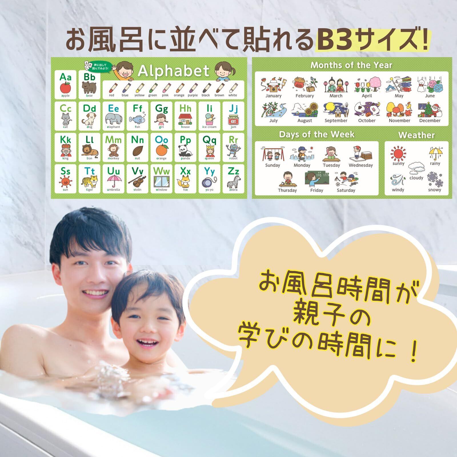 【現役塾講師監修】 お風呂ポスター モンテッソーリ 知育 見て聞いて遊んで定着 音声データ付 2枚セット B3サイズ (アルファベット・英語)