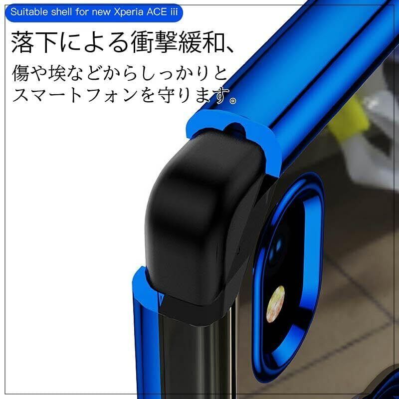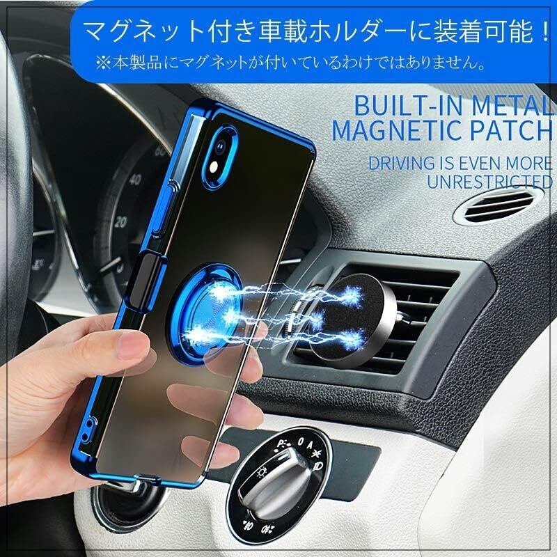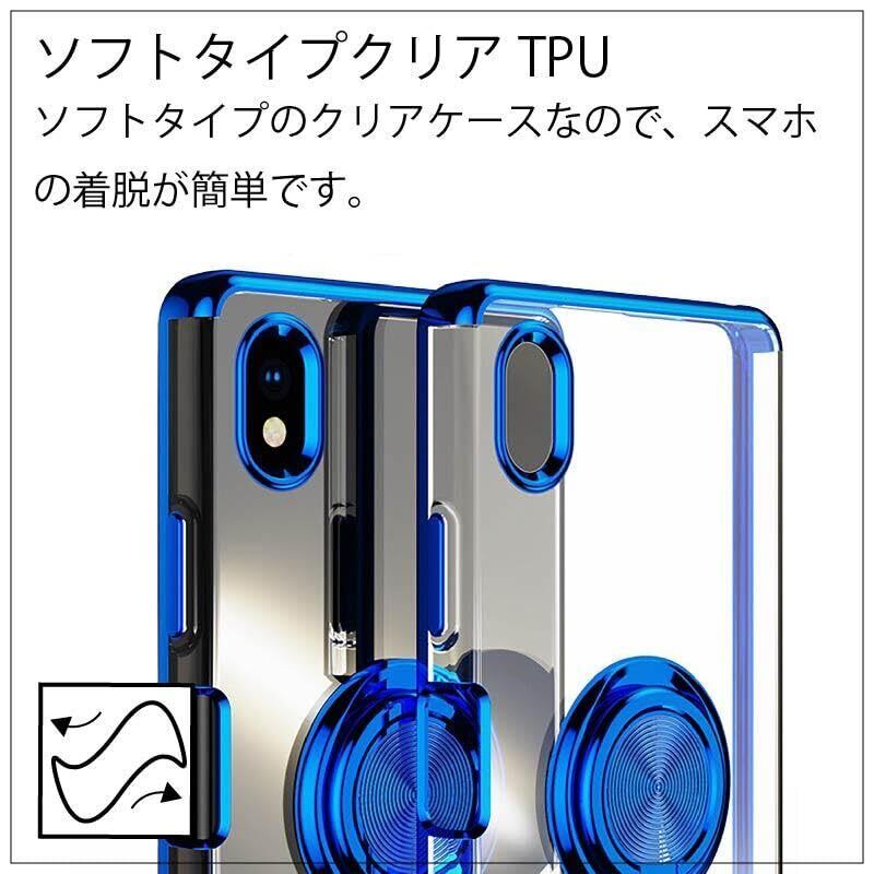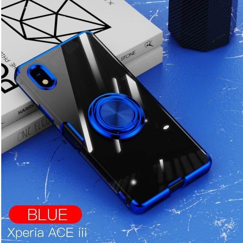 Xperia Ace III SOG08 SO-53C 用 ケース ソフトケース リング付 車載ホルダー用 360°回転 スタンド機能 TPU クリア 耐衝撃 衝撃吸収 ケース カバー 保護ケース サイドメッキ加工 クリアケース スマホケース スマホカバー ブルー 互換性あり