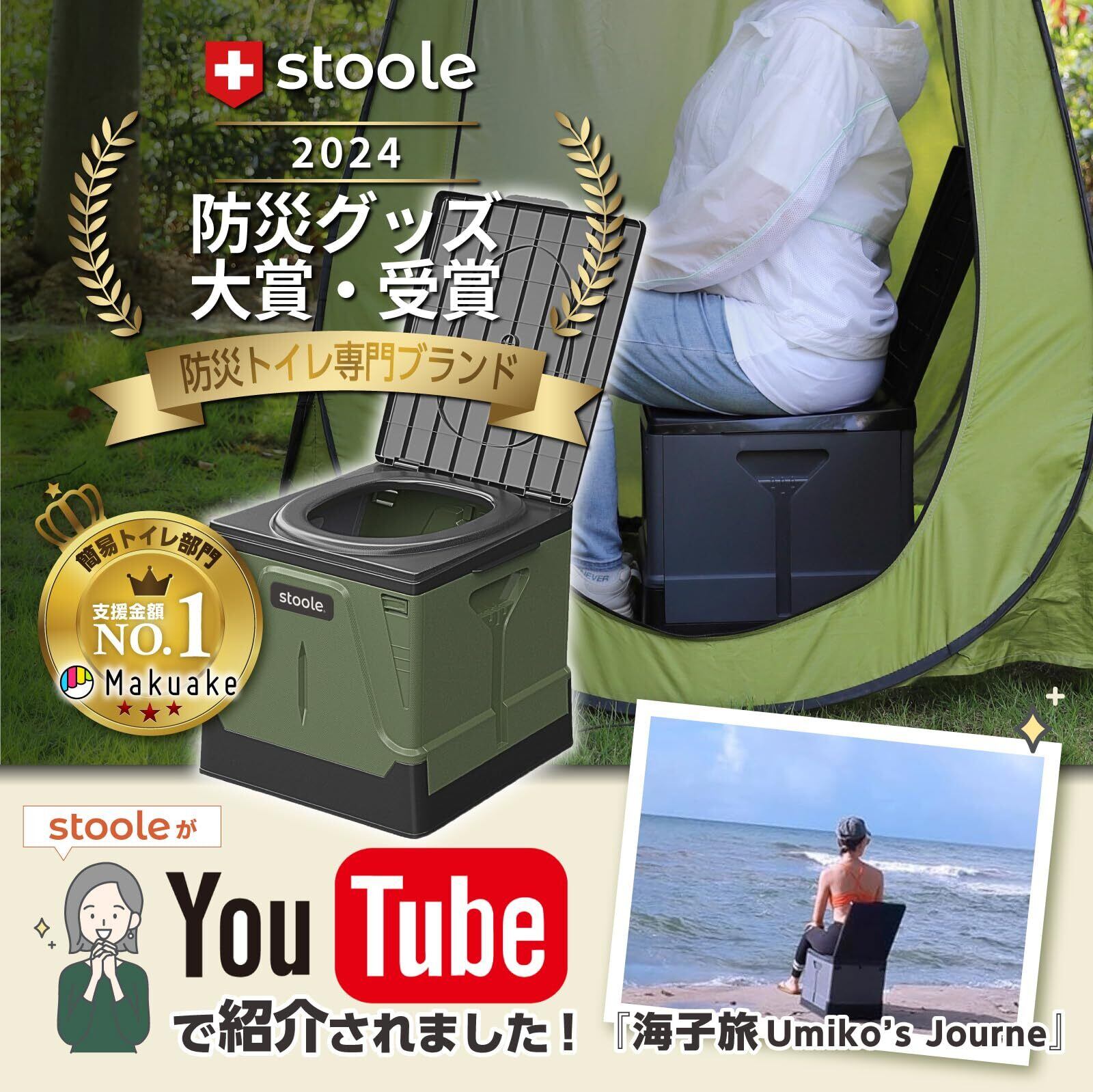 スツーレ® 【防災グッズ大賞受賞】 簡易トイレ ポータブルトイレ 防災からアウトドアまで 携帯トイレ 介護 耐荷重100㎏ (a.グリーン/Mサイズ)