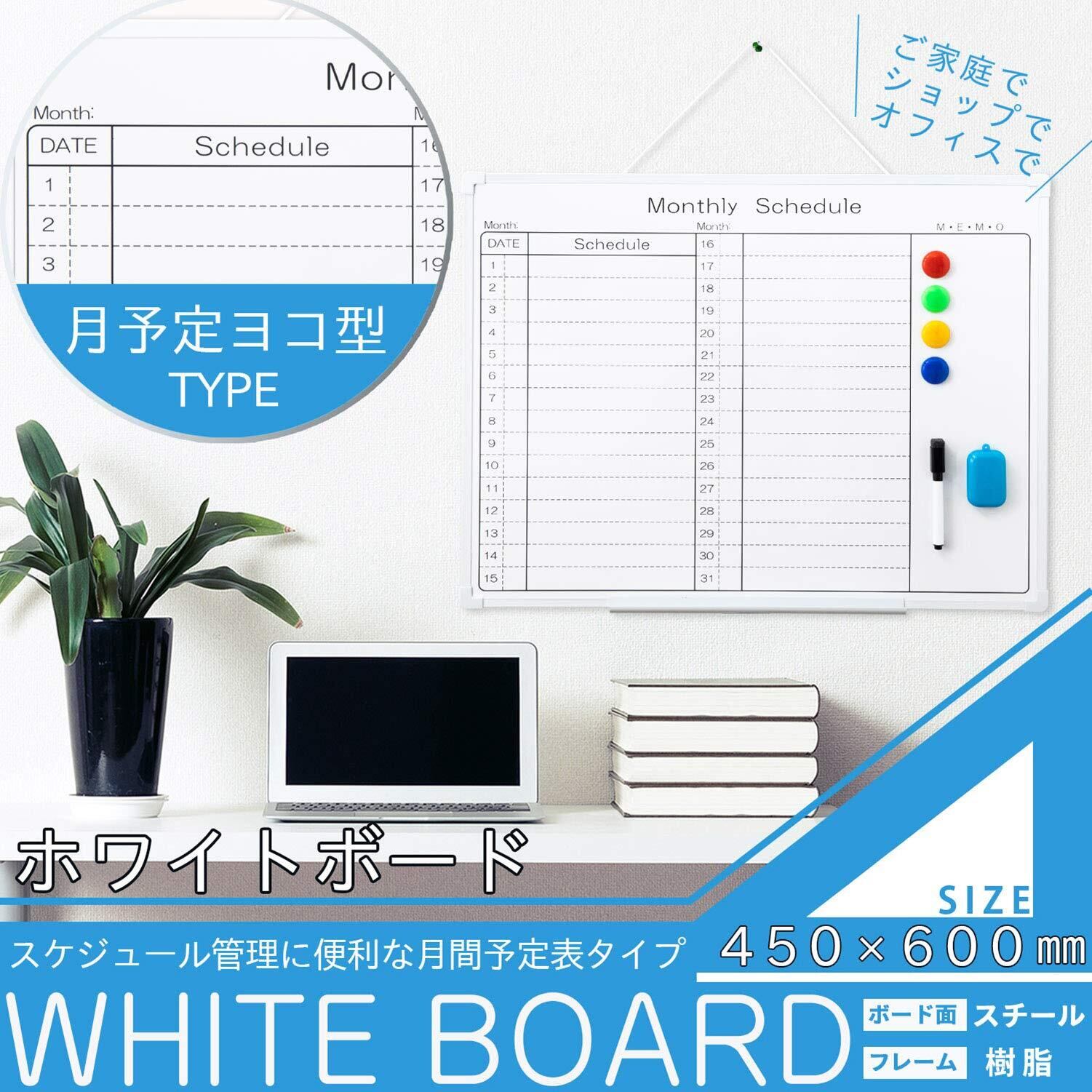 サンケーキコム ホワイトボード 樹脂枠 月予定 ヨコ型 600mm×450mm WB-6045-MY