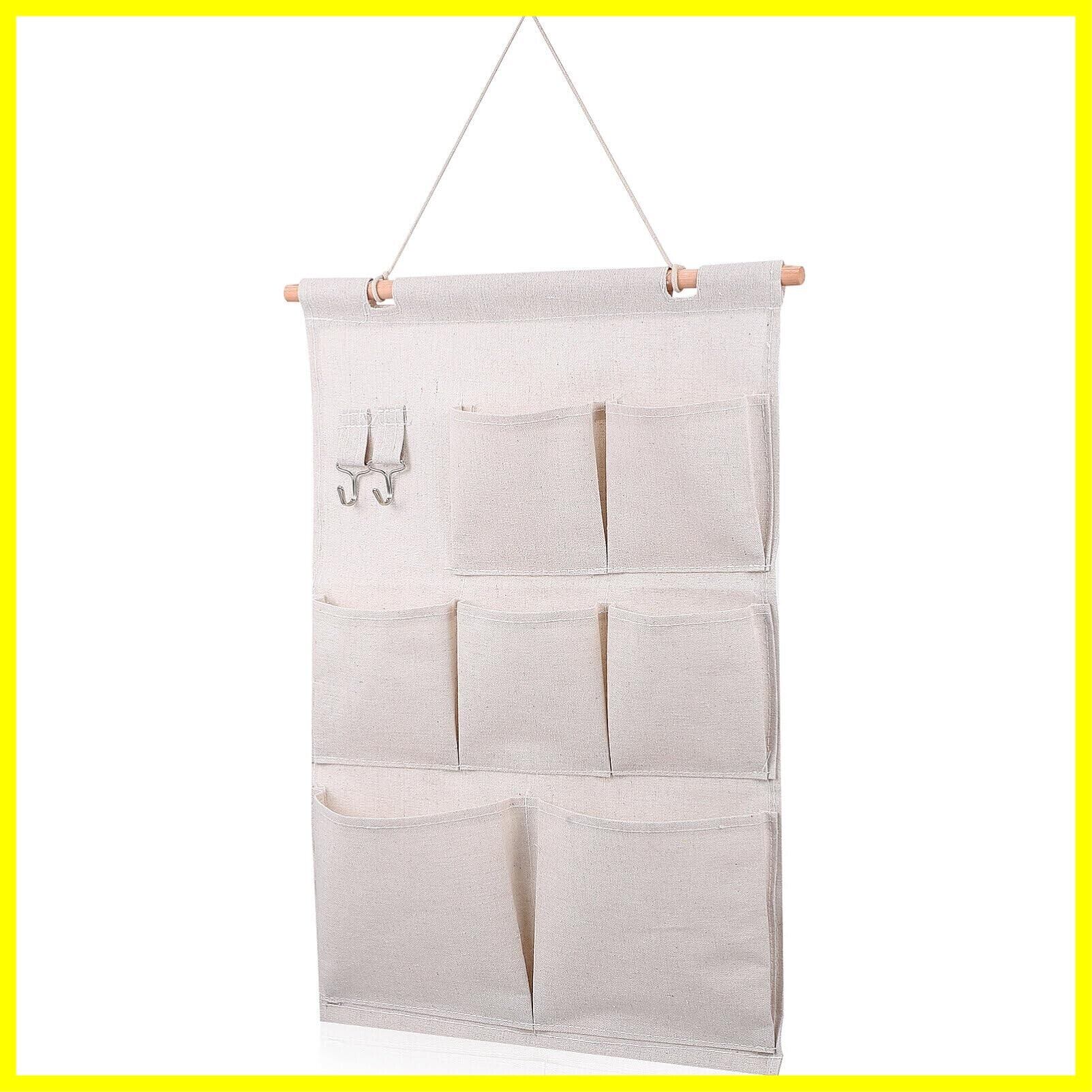 【製品仕様】:吊り下げ収納バッグ サイズ:約52*35cm 素材:綿麻、アイロンフック。 重さは約160gで汚れたら手洗い可能です。使用しない時は折りたたんでコンパクトに収納できます。