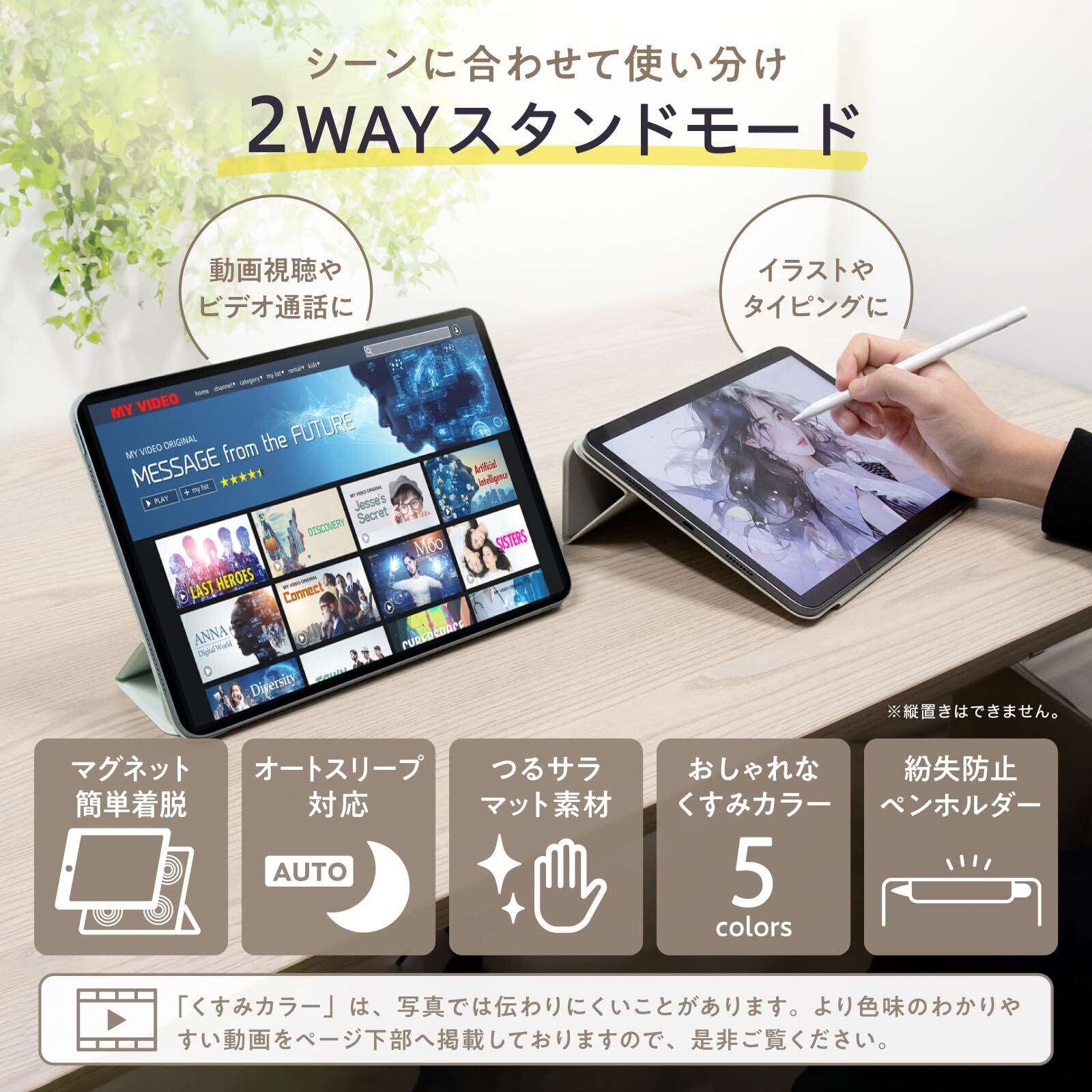 ▶▶▶【2WAYスタンド機能】:2タイプの角度でスタンドできるので、動画視聴・ビデオ通話・イラスト・タイピングなど様々なシーンで活用できます。