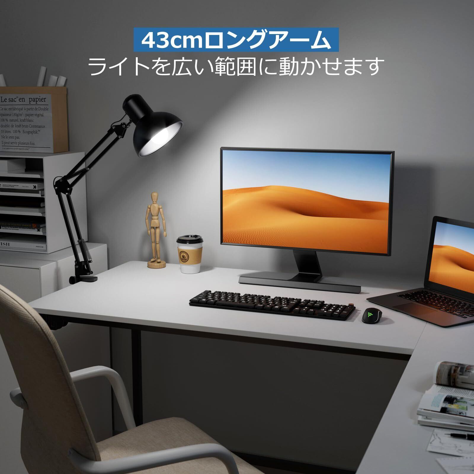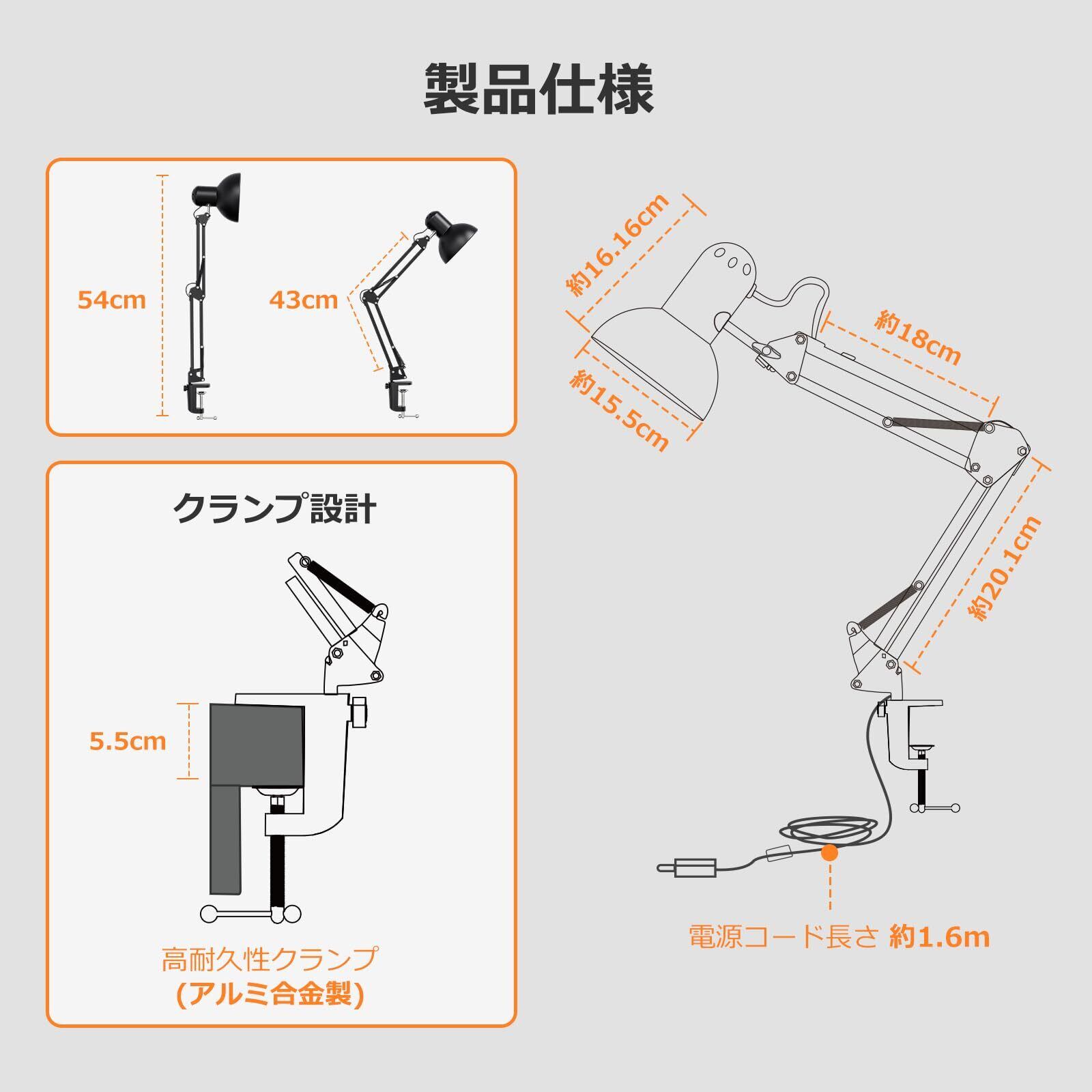 【フレキシブルアームで広範囲を照射】スムーズな角度調整が可能なスイングアームを搭載、スタンドライトを自由かつ便利に動かせます。43cmのロングアームは、お好みの位置に固定でき、広範囲を照らします。検査、製図、組み立て、精密機械加工などの作業に最適!