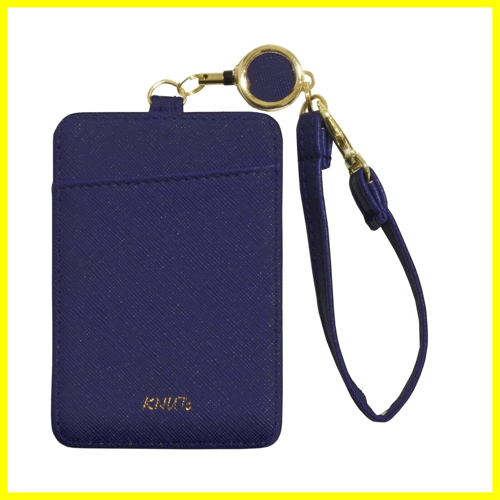 KNUTe リール付きパスケース 上部取付タイプ ネイビー ストラップ付 IDカードホルダー リール IDカードケース 2枚収納薄い メンズ ICカード 定期入れ