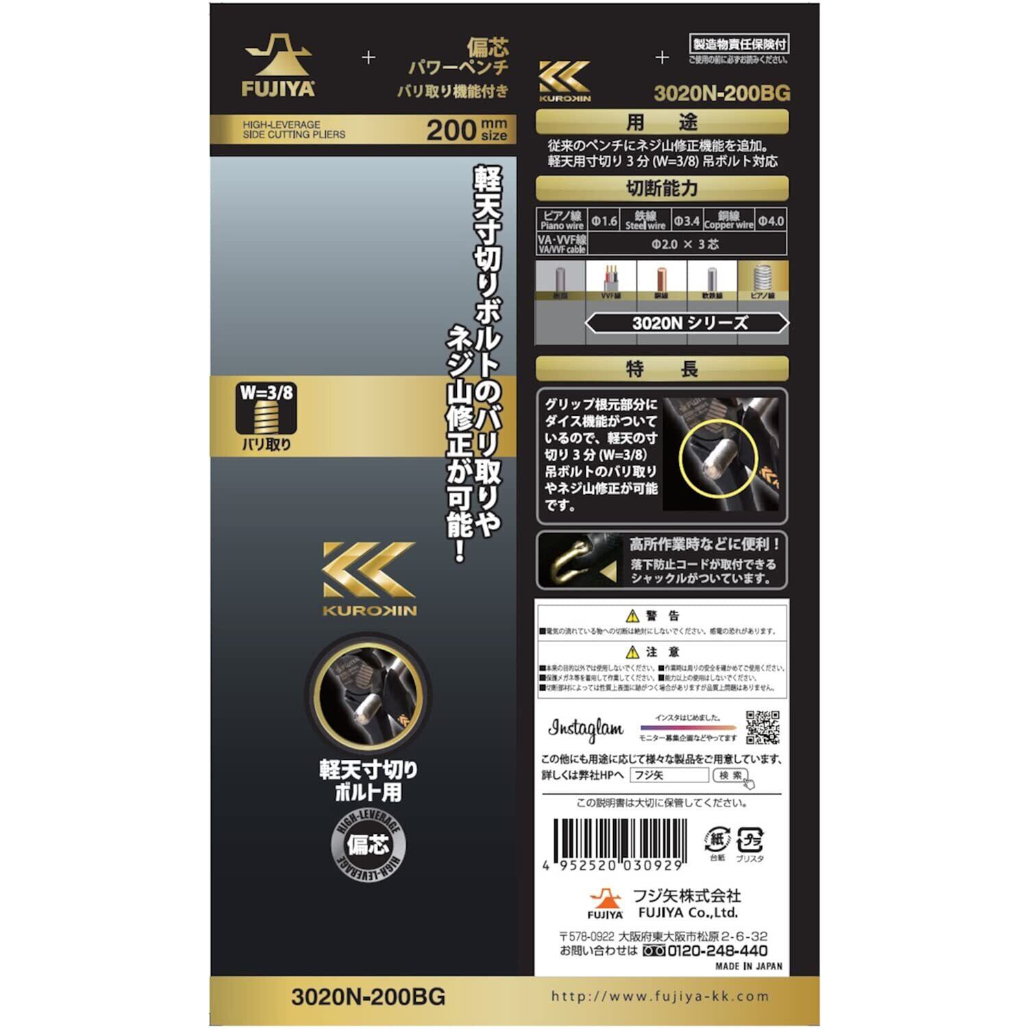 フジ矢(Fujiya) 偏心パワーペンチ 黒金 バリ処理機能付き 200mm 3020N-200BG