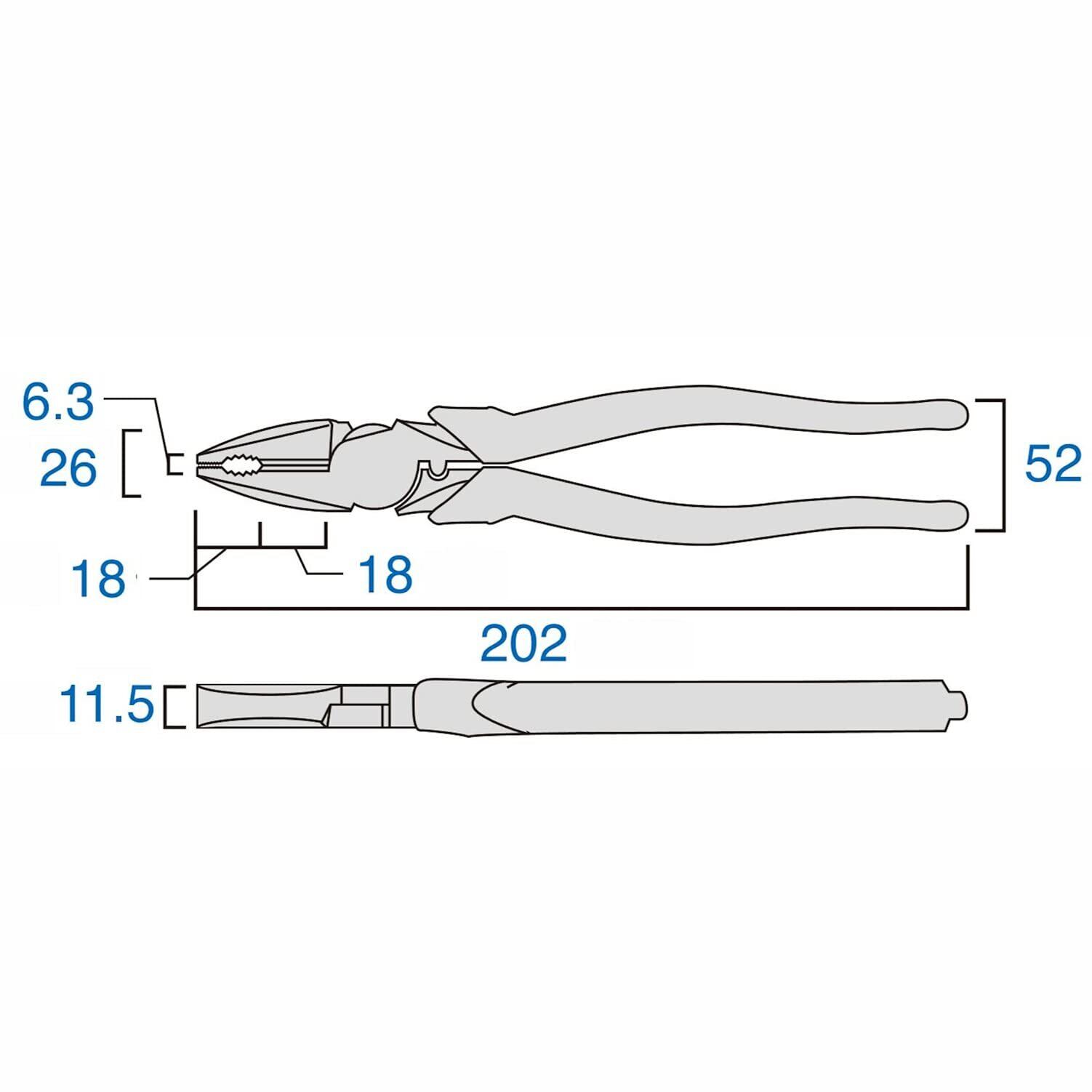 切断能力(mm):(鉄線)φ3.4、(銅線)φ4.0、(ピアノ線)φ1.6、(va線・vvf線)2.0×3芯