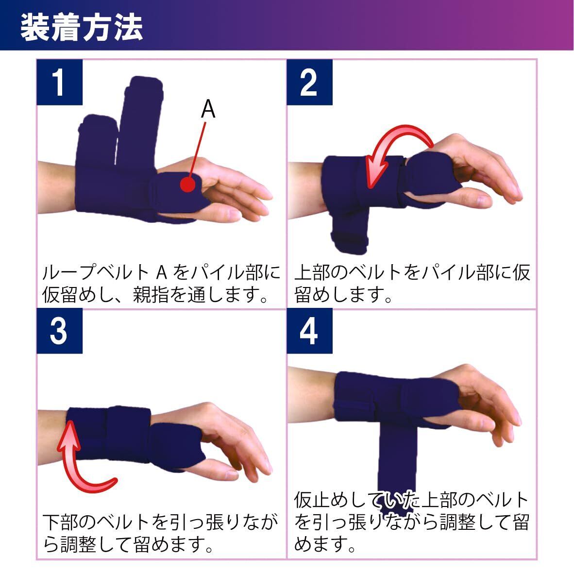 母指の対立位を効果的に保持します。母指IP関節(末節と中節の関節)の運動を妨げません。