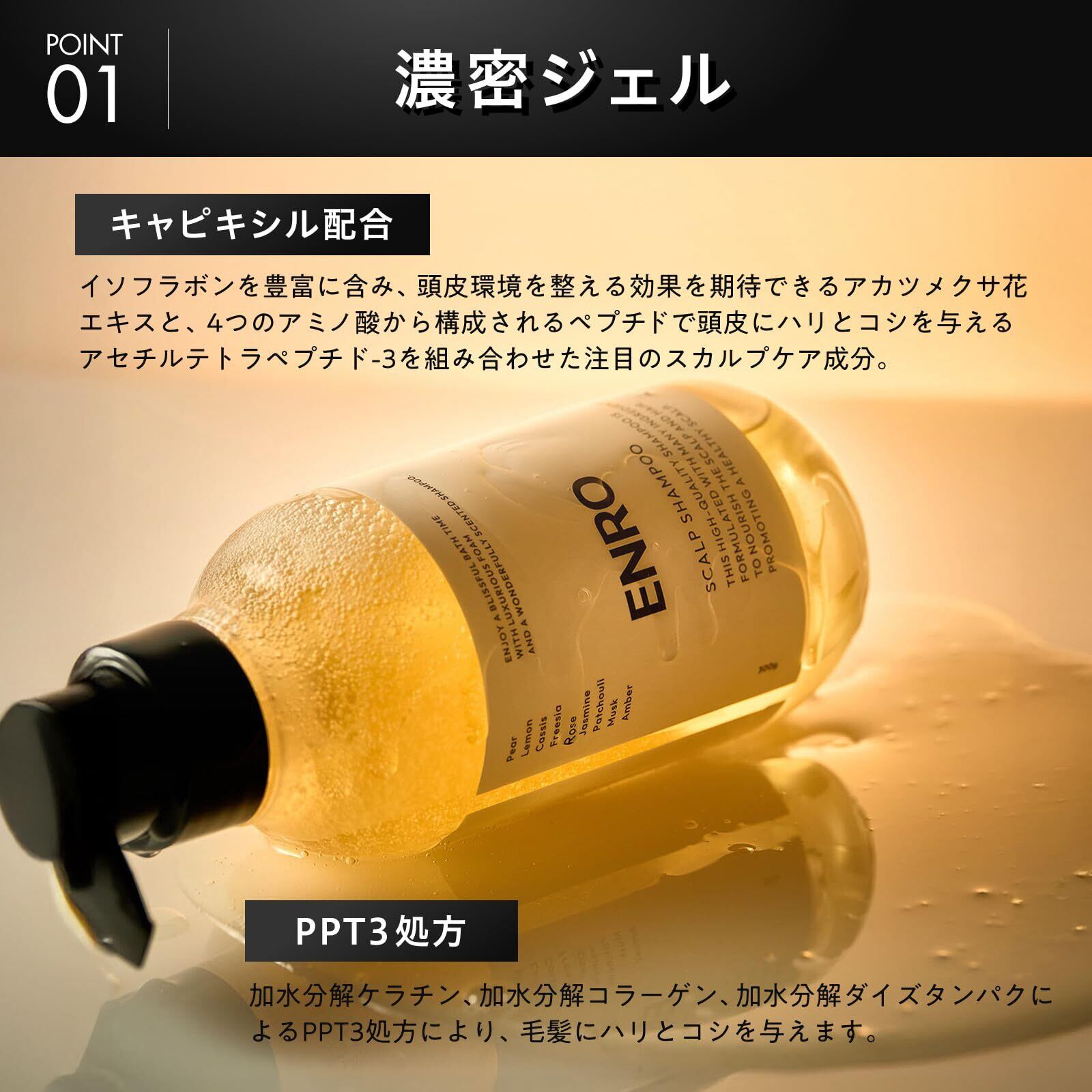 ◎「贅沢泡×至高の香り」 濃密ジェルからのもこもこと泡立つ贅沢泡と、果実の花の瑞々しさからムスクとアンバーの深みを感じさせる香りで、まるでサロン帰りのような高揚感を毎日のバスタイムでご堪能ください。 ◎「頭皮と髪を整える」 スカルプケア成分のキャピキシルを配合。その他多くの成分を配合し頭皮と髪を整えます。 ◎「優しく洗う」 アミノ酸洗浄成分で頭皮に優しく、しっかりと洗います。またノンシリコン、合成着色料、鉱物油、サルフェート、紫外線吸収剤の5つのフリー処方で髪や頭皮をケアします。 ◎「使用方法」 髪と頭皮を十分に濡らした後、適量を手に取って髪に塗布してください。やさしく髪と頭皮をマッサージするように泡をなじませてから、よくすすいでください。