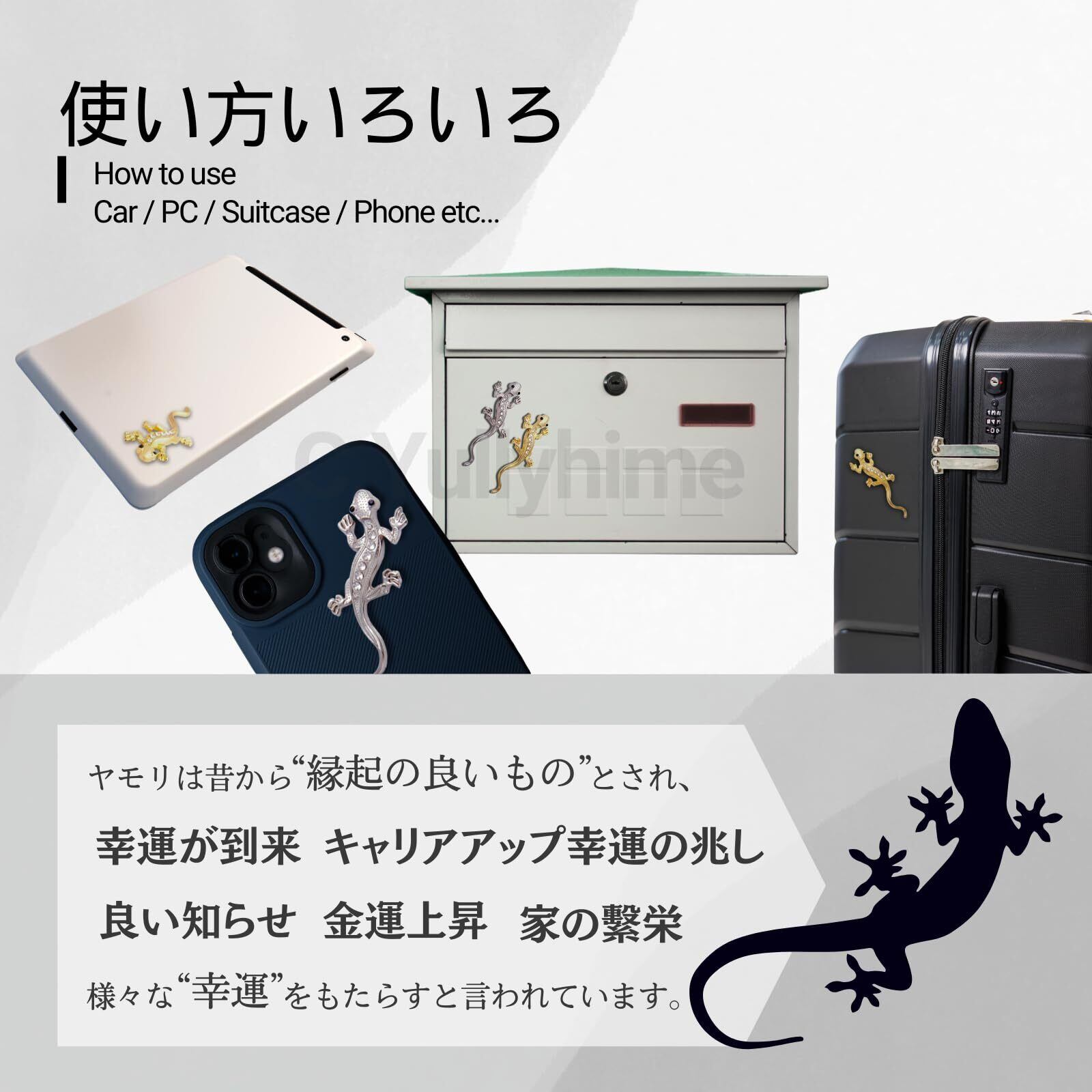 こちらのステッカーは、車のカスタマイズを手軽に楽しむための素敵なアイテムです。ヤモリのデザインは、足元が丸く這い蹲っている姿がとても愛らしく、特に子供や女性に人気があるとのことです。 また、シルバーとゴールドの2枚セットで提供されているため、異なる場所に貼ったり、並べて貼ったりと、自由にアレンジできるのも魅力的です。シンプルなデザインは、さまざまな車にマッチしやすいので、個性を出したい方にはぴったりですね。おしゃれで可愛いカスタマイズを楽しんでいただけることでしょう。
