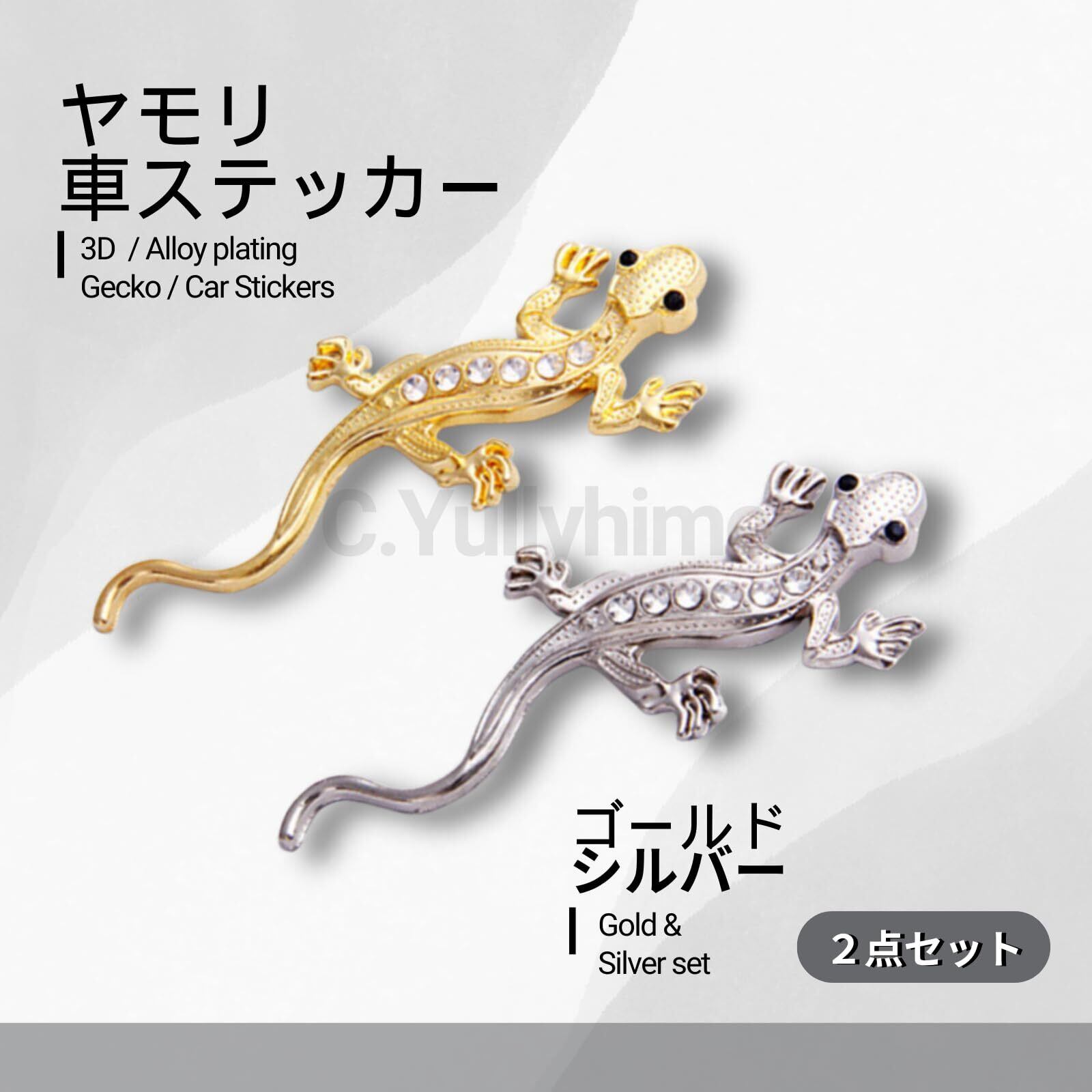 C.Yullyhime ヤモリ 車ステッカーかっこいい 2点セット ヤモリ 3D トカゲ 立体 可愛い目が エンブレム ゲッコー ヤモリ シルバー シール カー用品 貼るだけ 簡単