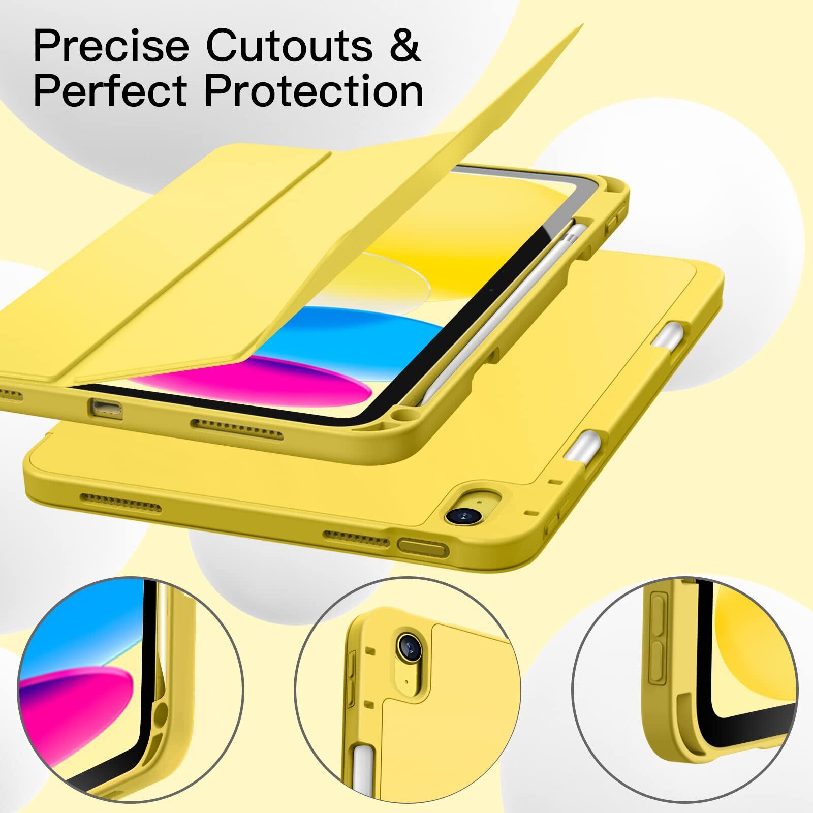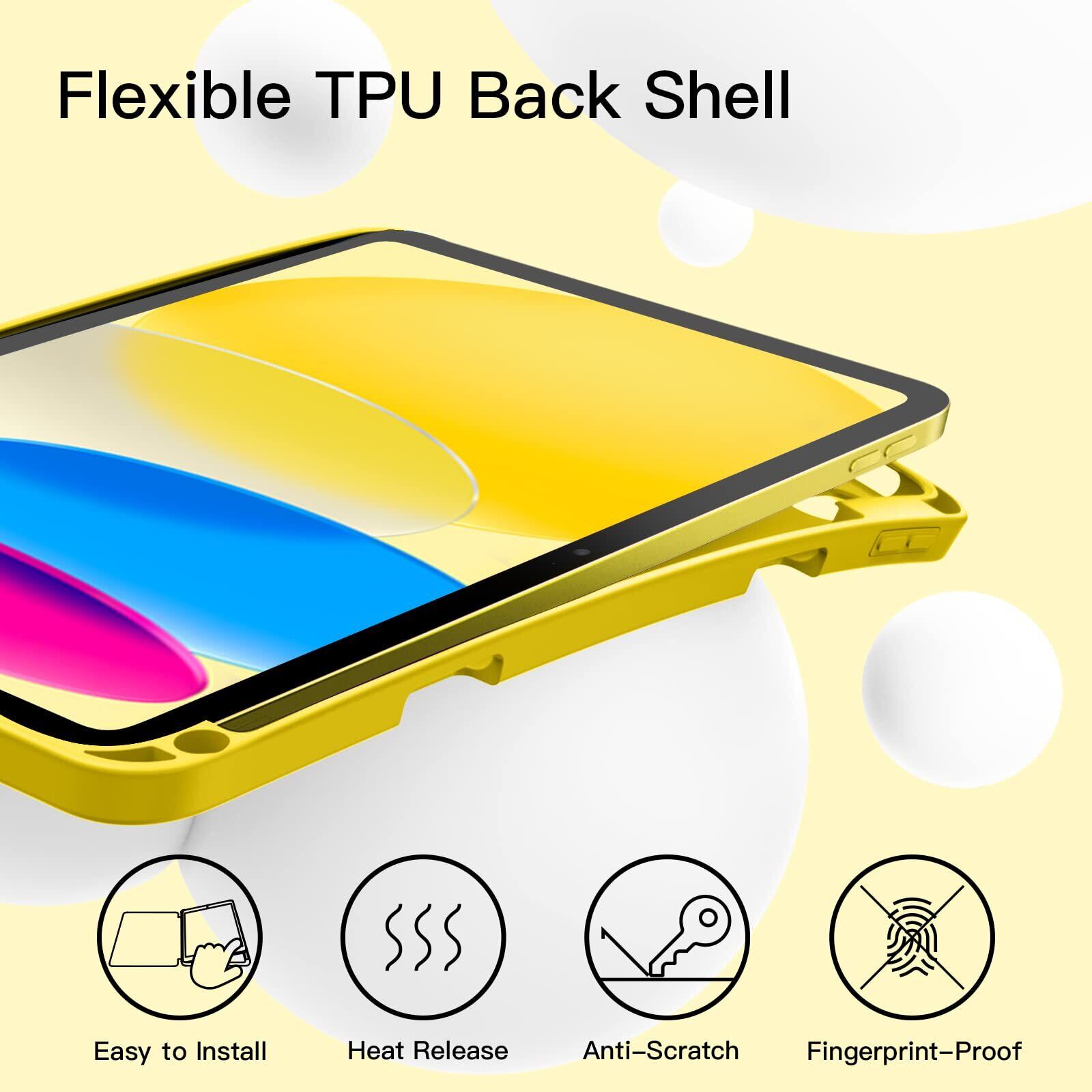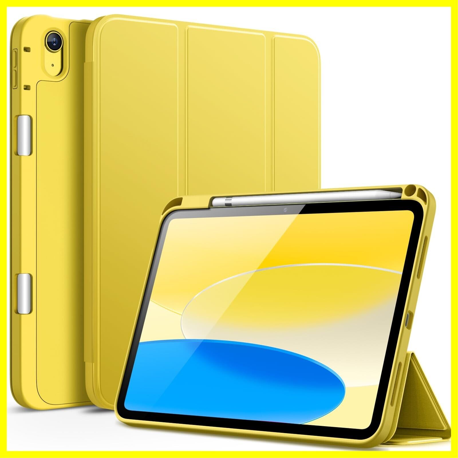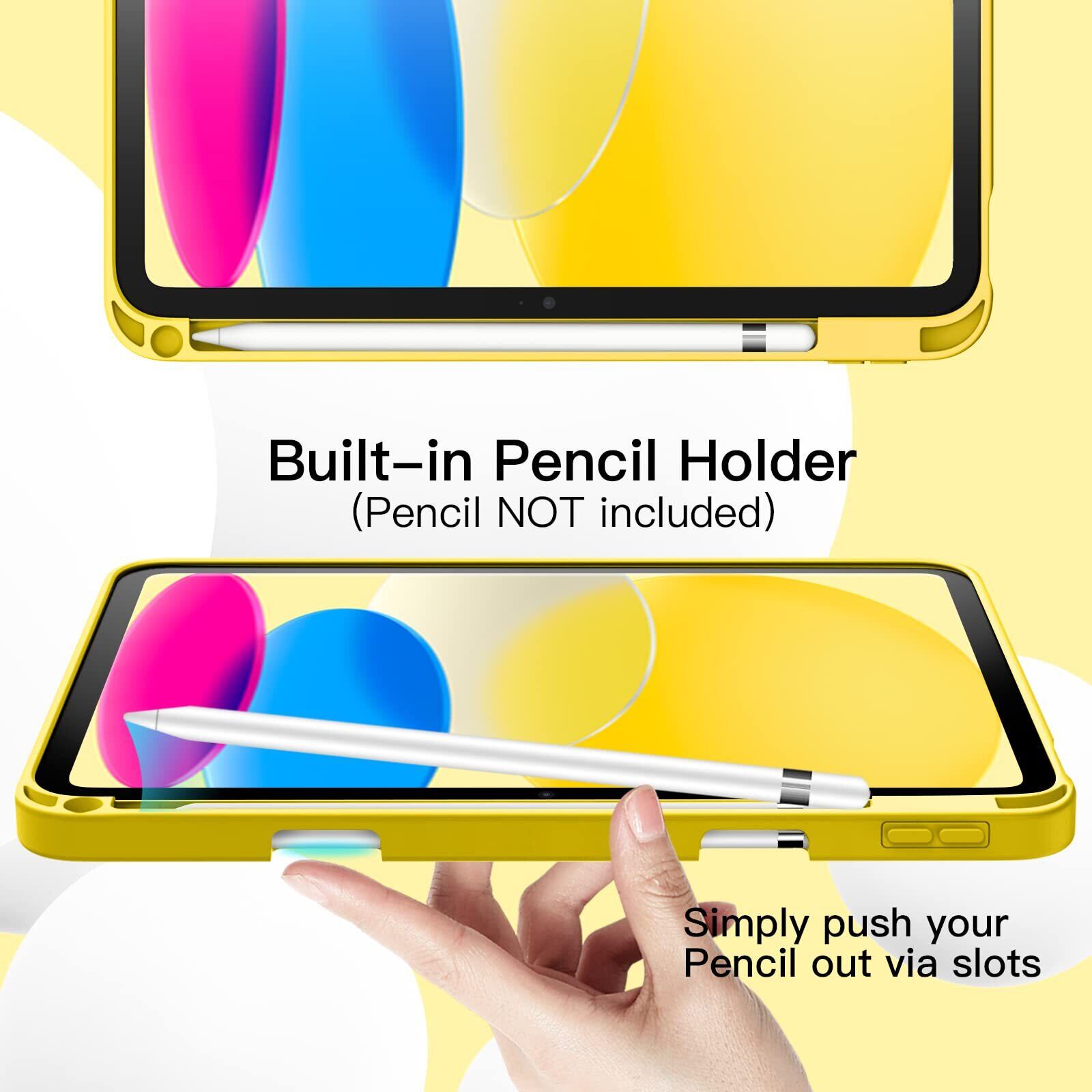 JETech iPad(A16)ケース 第11/10世代(2025/2022モデル)用Pencilホルダー付き 対応 ソフトTPUバック スリム保護カバー オートウェイクアップ/スリープ機能付き (イエロー)