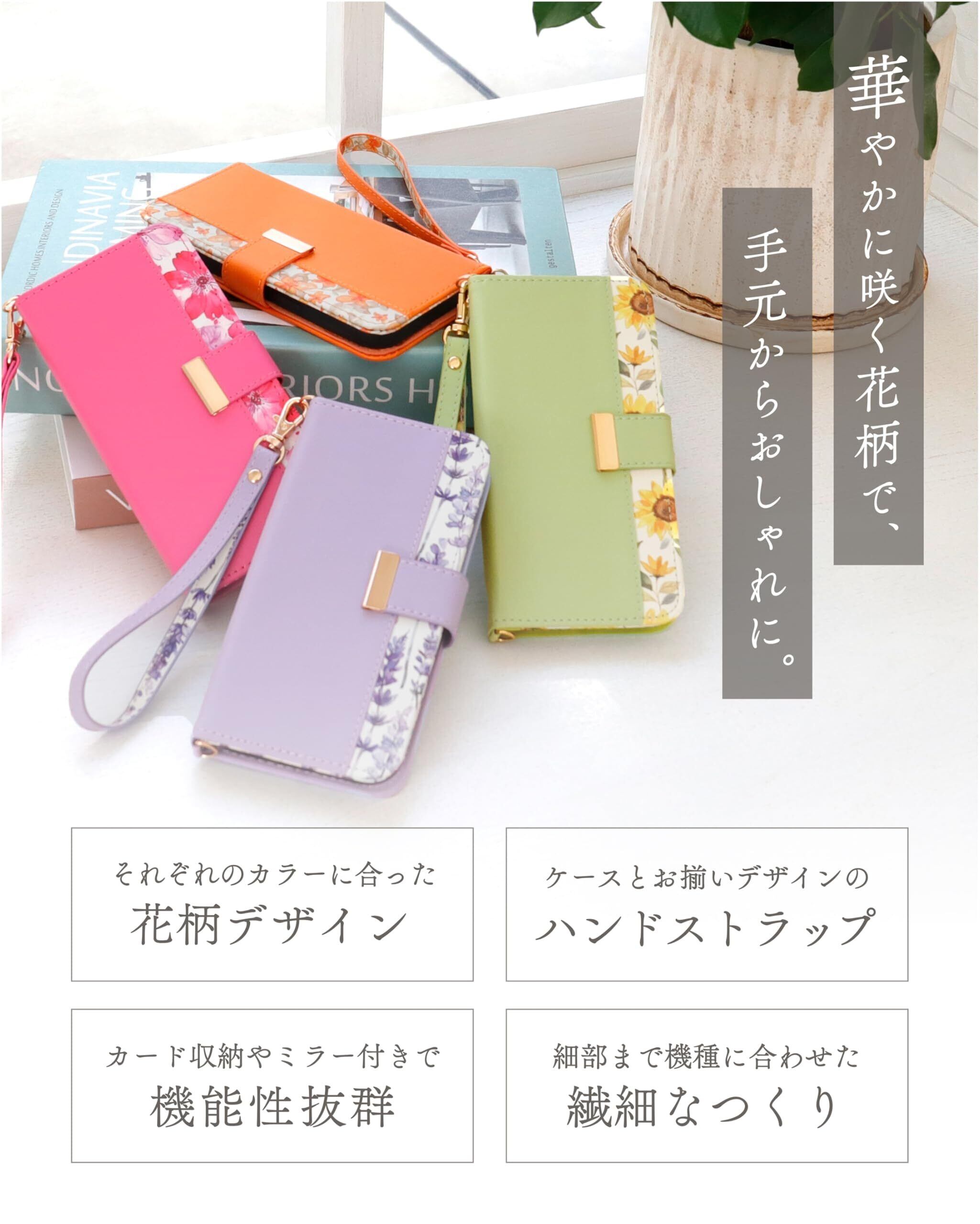 MINTY iPhone14 用 ケース iPhone13 用 ケース 両機種対応 手帳型 花柄 ストラップ付き ラベンダーミスト